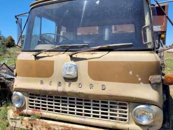 1968 TK Bedford Tip Truck ~ 11ft Tipping tray with Edbro Hoist ~ 6cyl Petrol engine ~ 4sp Gearbox ~ 2sp Diff ~ Good tyres all round including 1 new 9.00x20 ~ Truck hasn't been used for awhile, but was running & driving ok then. ~ NB: Contents in Tipper body are not included.