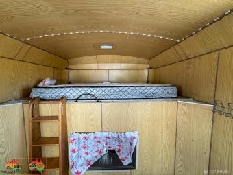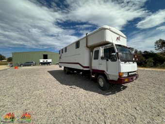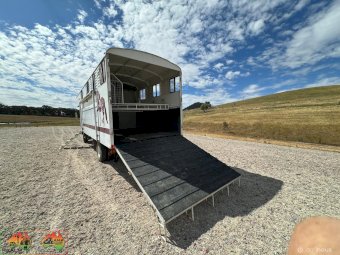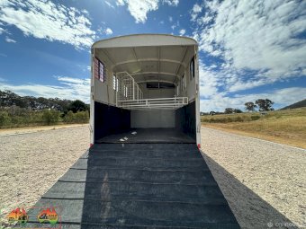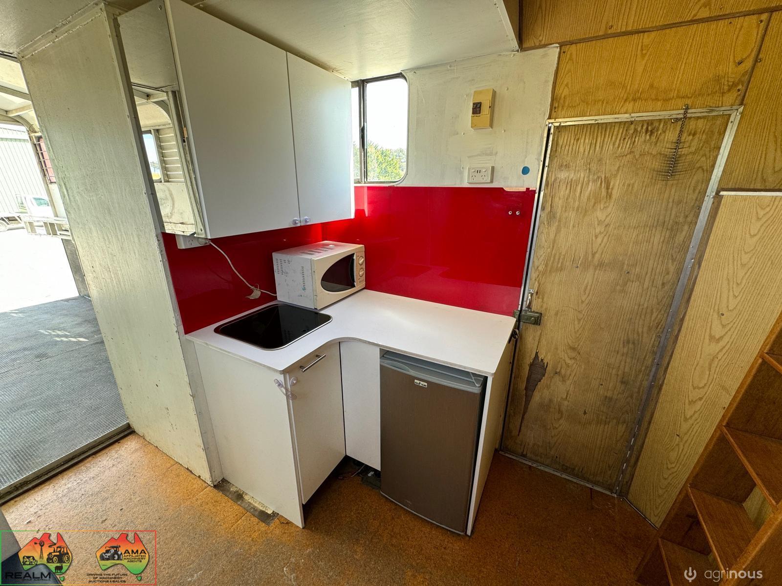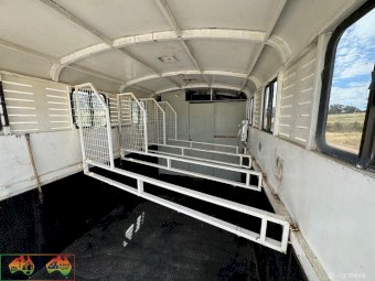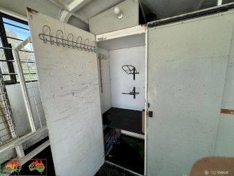3 seats ~ Living has fridge microwave sink double bed. Storage cupboards etc ~ 500w solar panels and 200Ah batteries ~ 12v throughout ~ LED lights inside and out ~ Awning on 1 side ~ Horse box has tack cupboard. ~ Cowboy shower. ~ 3 large WB angles ~ Easily fits 17.2 hh horses. ~ Hydraulic tailgate. ~ Tyres all new 2 years ago ~ New batteries ~ Cons.