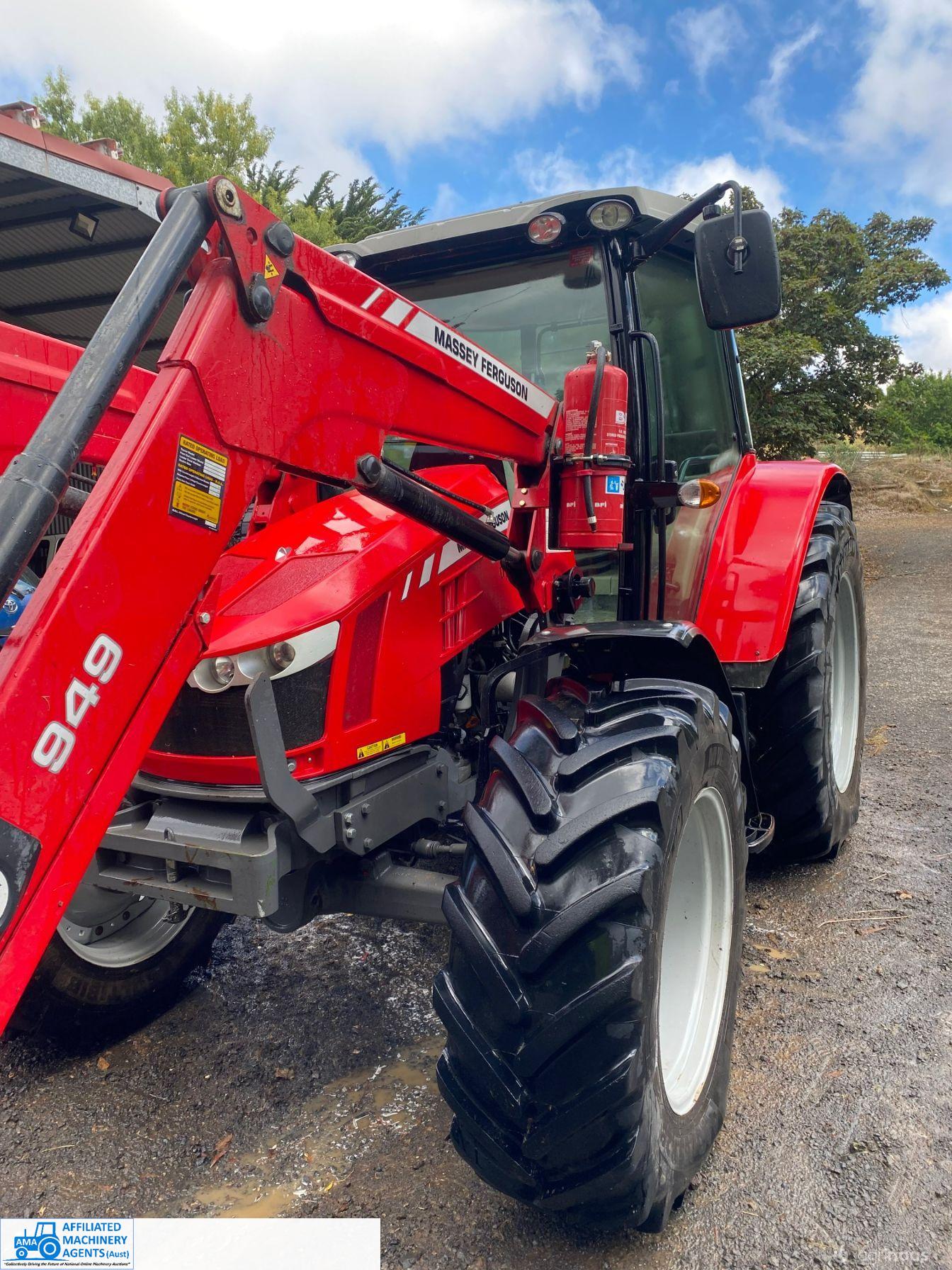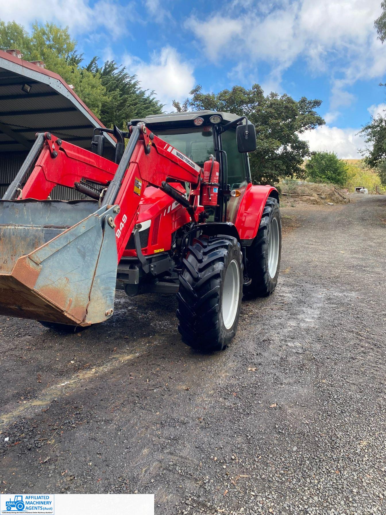 2017 MF-5610 Tractor with MF-949 FEL ~ 3.3ltr 100Hp diesel engine ~ This tractor presents extremely well being a 1 Owner machine with only 1,080 Hrs ~ Always serviced & maintained by the local MF Dealership ~ Tyres are good with plenty of tread ~ This tractor is near faultless with the only known damage being a hole in the front plastic wheel guard (see photo) ~ Suit a NEW BUYER