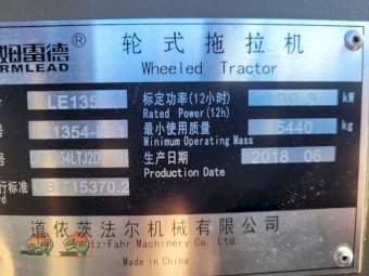 2018 Farm Lead LE-1354 FEL Tractor ~ FWA ~ 135 Hp, 6cyl Diesel engine ~ 253.3 Hrs ~ Just been serviced ~ 3pl ~ PTO ~ Triple remotes ~ Near new tyres ~ Good A/c cab with radio ~ Exc quality Near New FEL Tractor ~ Will be sold well below true value ~ 5% Buyers Premium & GST will be added to sale price ~