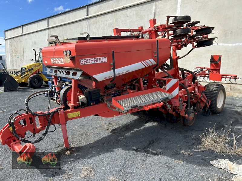 Gaspardo Gigante Pressure 4.0m , 3pl single disc seeder, 6”” spacings with mounted press wheels, in-frame 2 bin mounted hopper, 2 point swivel hitch, high flotation tyres, mounted finger harrows, ISO compatible, v/ good condition, located Toowoomba, Qld