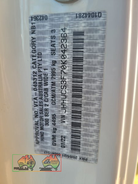2022 (New) Hino 300-616 Series 2 ~ Cab chassis ~ 4Ltr, 4cyl, Turbo diesel engine ~ 150 Hp ~ 5sp Auto ~ Power windows & mirrors ~ Air cond. ~ Statutory write-off (un-registerable) ~ This brand new truck was inundated by flood water & written-off by insurance company ~ Engine, diff & gearbox were drained, without signs of water in the oil ~ The electronics are faulty & will require some attention. ~ Payment DUE within 24 Hrs of Invoice ~ To be Sold as-is, prior inspection recommended. ~ NB: This item is GST exempt. ~ A Buyers Premium of 5% (+GST) applies to all Lots. ~ If you wish to enquire further about our listings, please Contact AMA Agent: Michael DOWNIE on 0458 241 242 or email michaeld@amasales.com.au