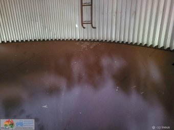 Approx. 24 ton Field Bin ~ Good solid condition ~ No signs of rust ~ Slight damage to roof, easily repairable ~ Good wheels & tyres.