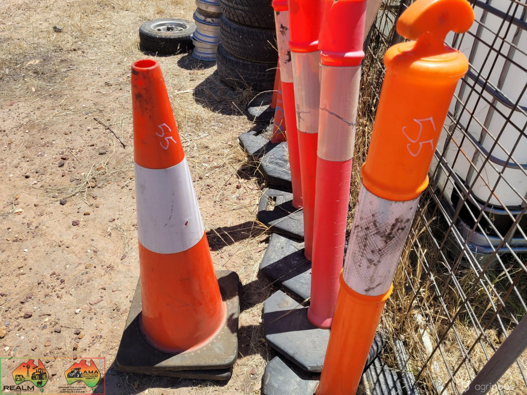 (1222) 2x Witches Hats & 7x Bollard Poles