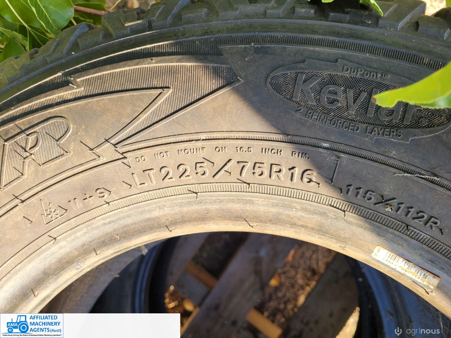 (5110) 3x Tyres LT225/75R16 (Approx 40% Tread)