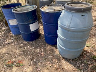 44 gallon drums with clamp lids x 3