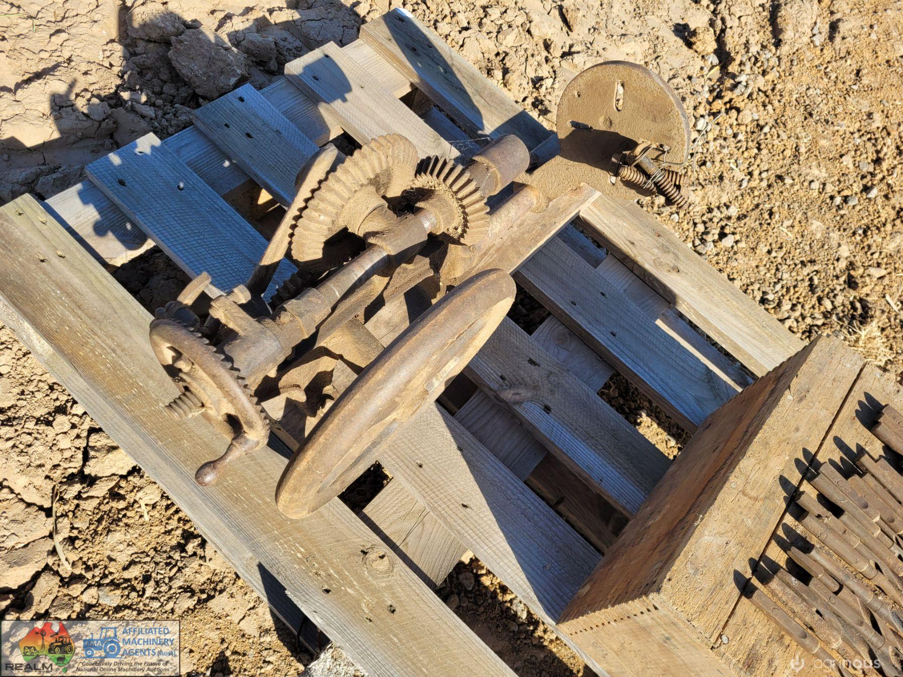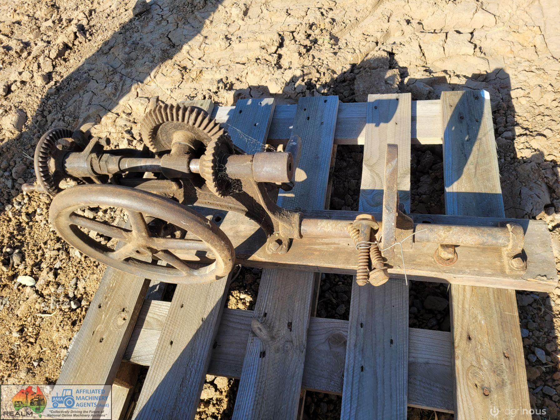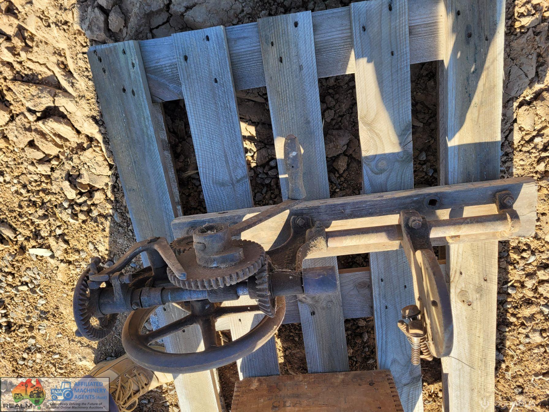 (2479) Antique Hand Operated Drill Press & Original Drill Bits