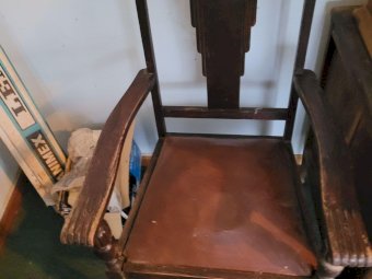 (3900) Antique Timber & Leather Chair
