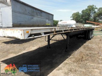 Barker Bogie Flat top trailer ~ Spring suspension ~ Timber floor ~ A fairly straight trailer ~ Ideal farm Hay/Grouper trailer
