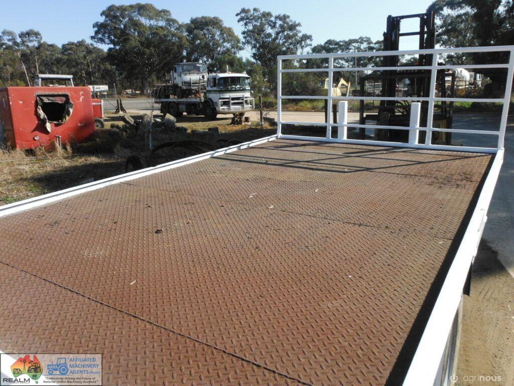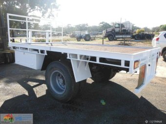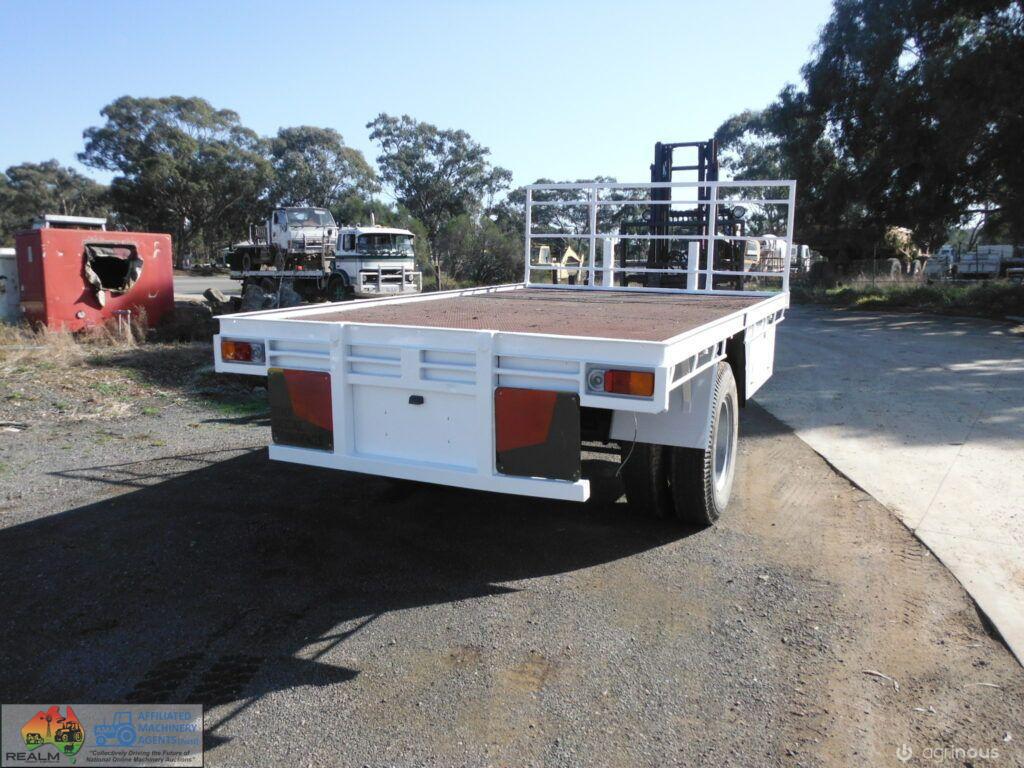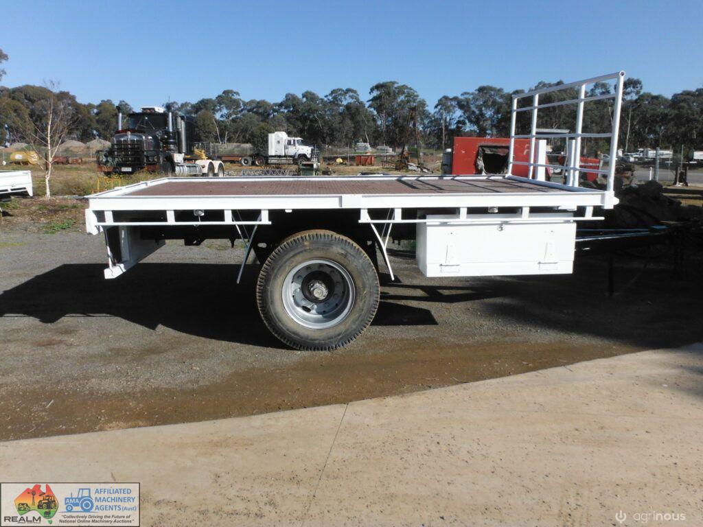 Bartlett Small Flat top trailer ~ S cam brakes with maxis (untested) ~ Lights not wired ~ Steel tray is 2.42m wide, 4.06m long ~ A good solid trailer ~ Bartlet hitch ~ VIN: R28TR0193U