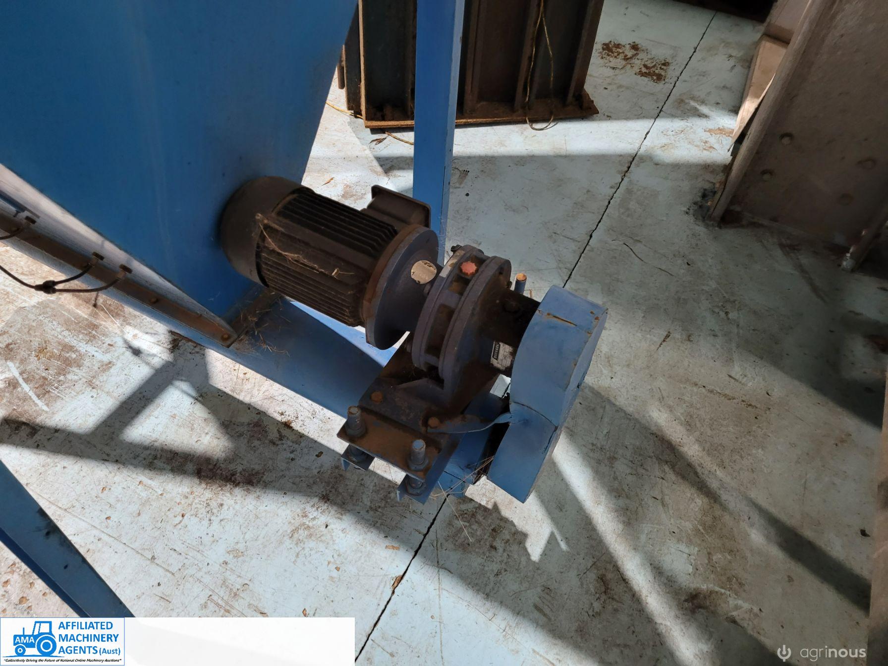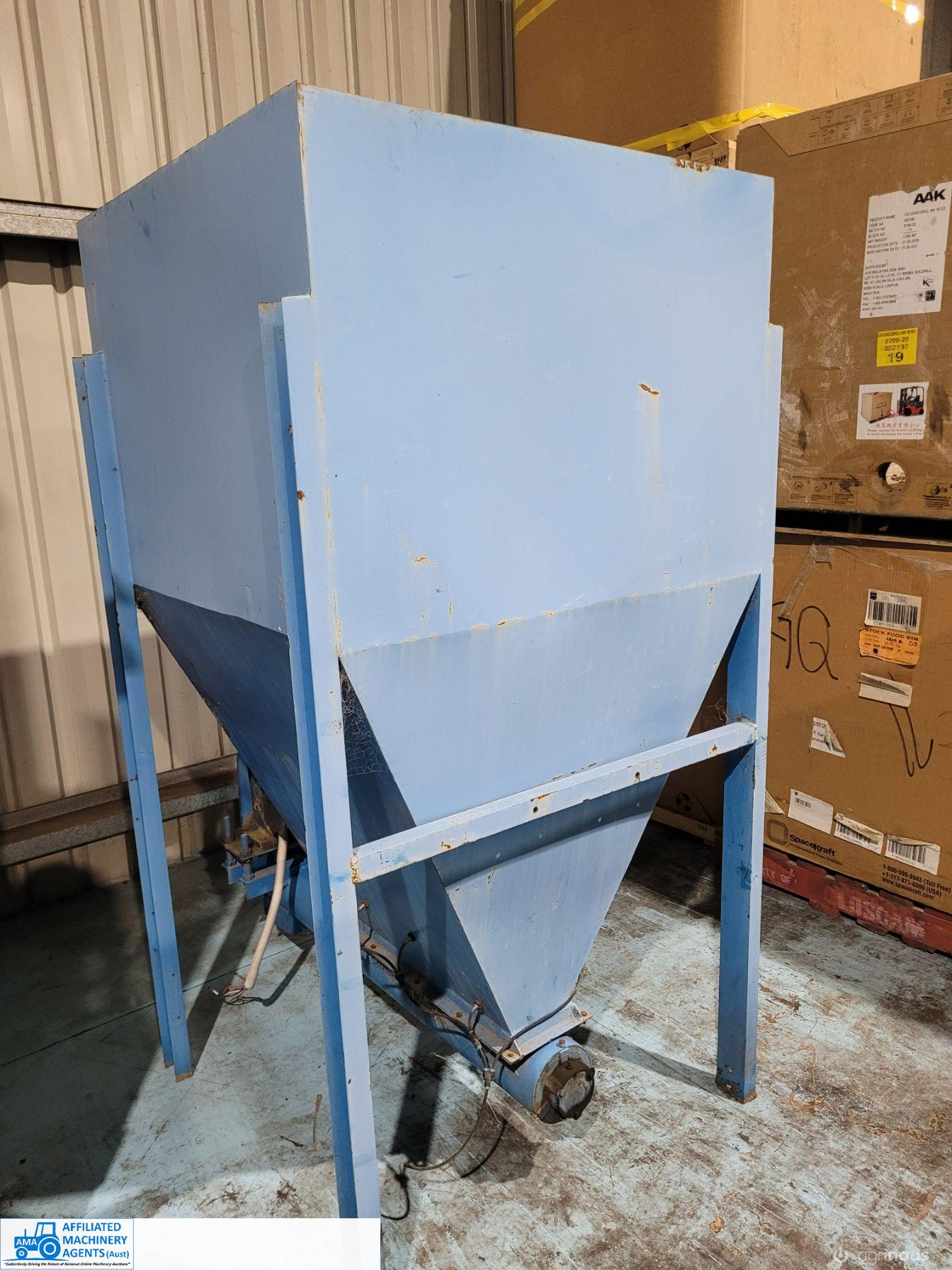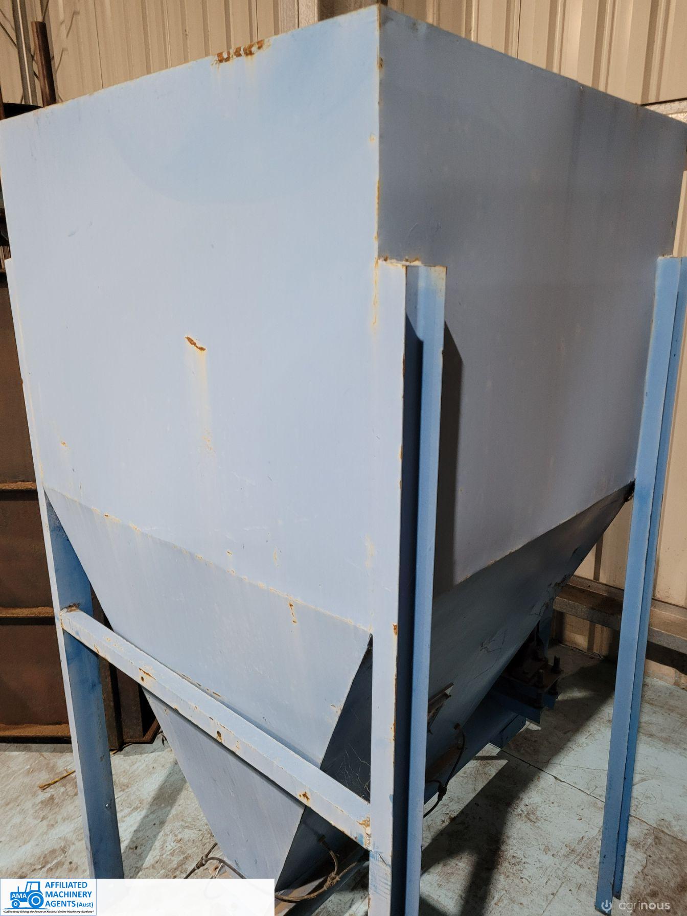 Blue 1/2 ton Hopper with 3 phase electric discharge auger