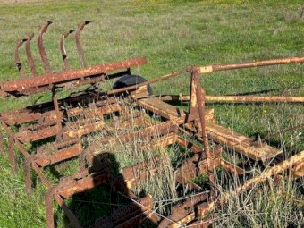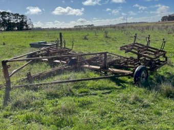 Bowel & John's 24ft Trailing Cultivator ~ Fold-up wings ~ Knock-on points ~ Good order, although plenty of surface rust.