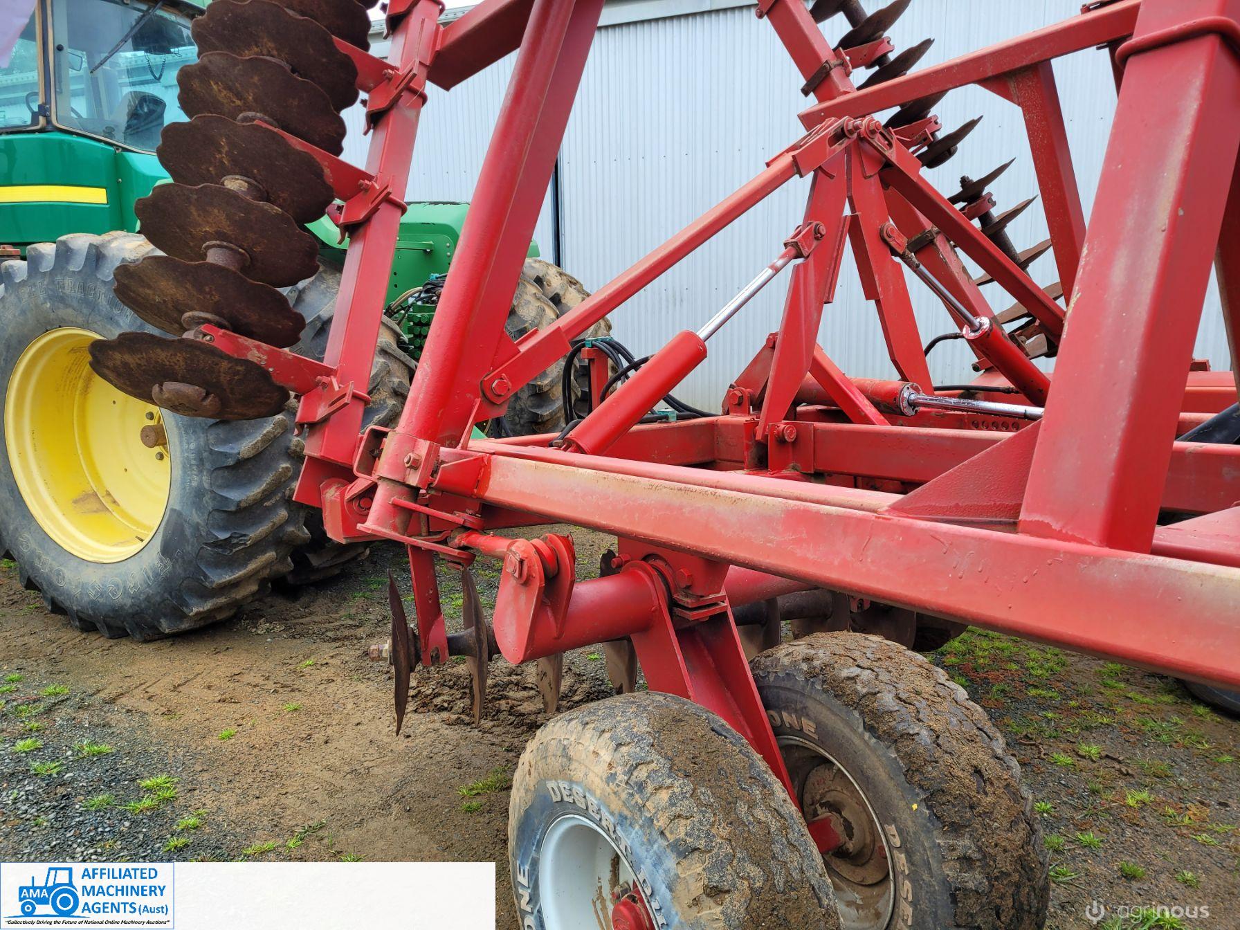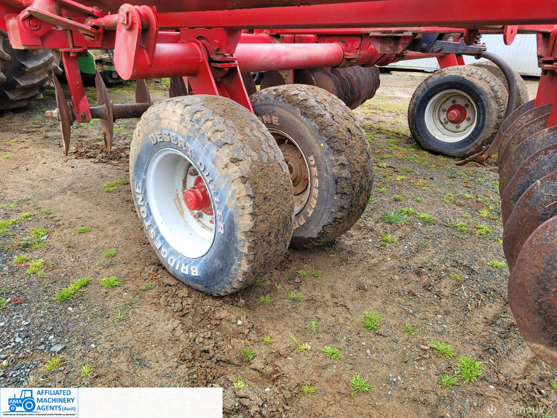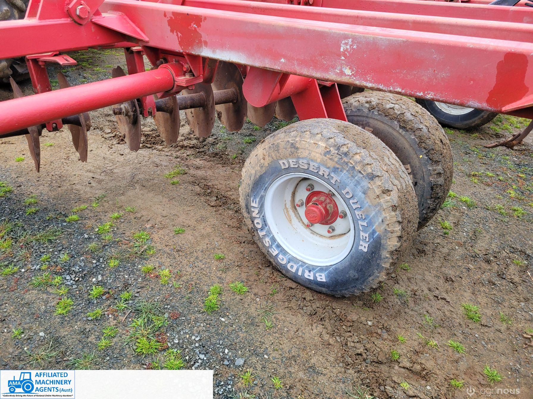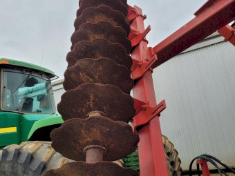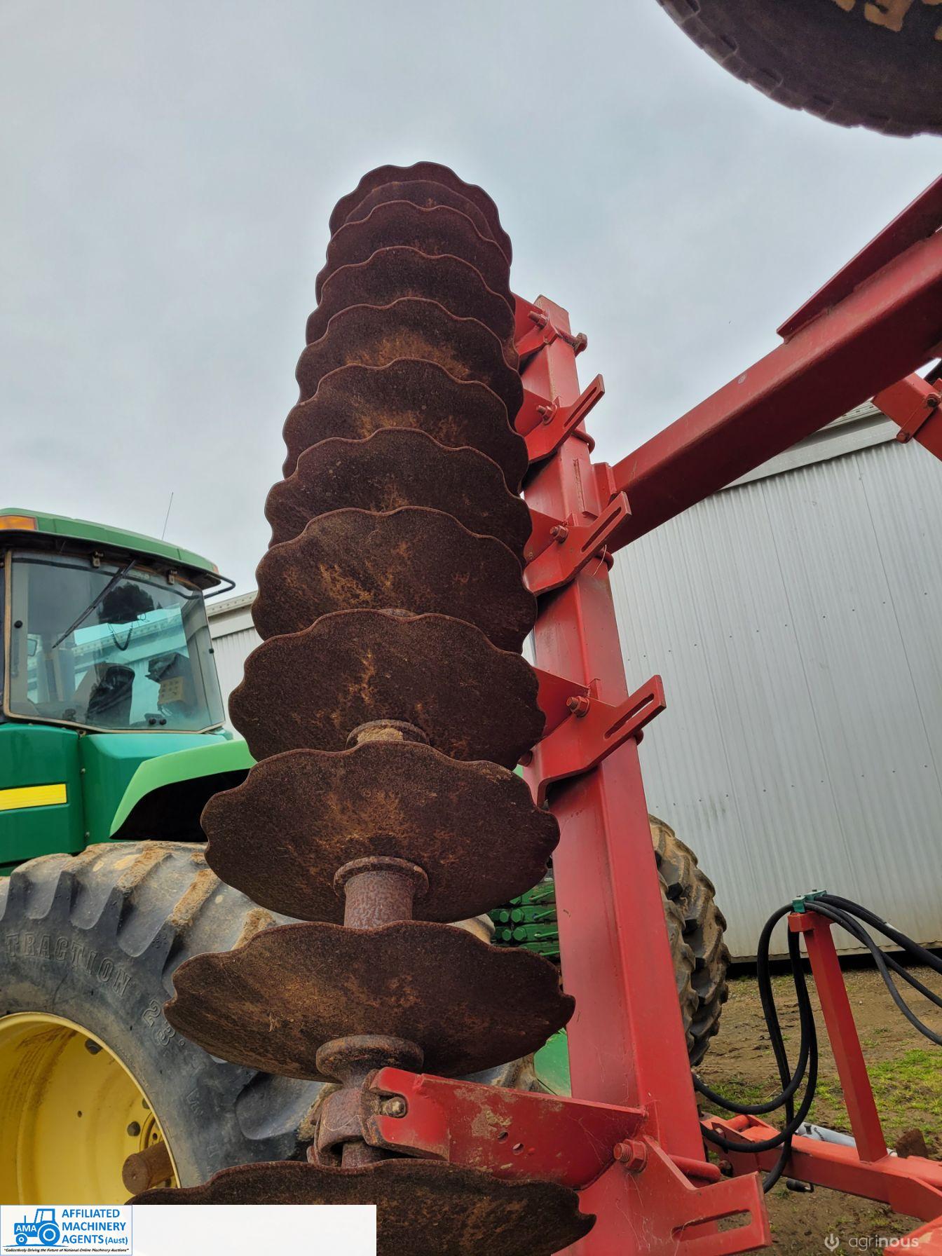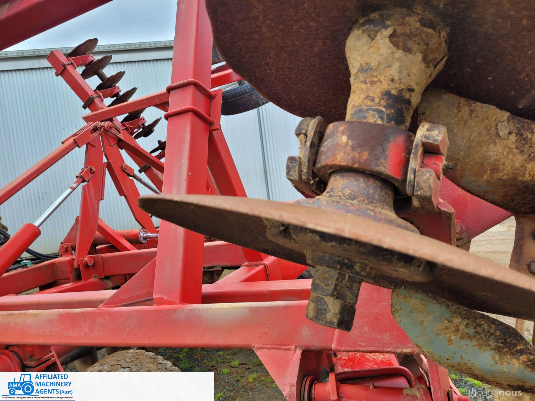 Bush-Hog 78 plate offset Discs, 9m cut, gang bearings seem good, Good solid H/duty frame. Wheel hubs have been upgraded to 4ton specs. All hyd. rams are good, no oil leaks. Front discs 50%, Rear 20%.