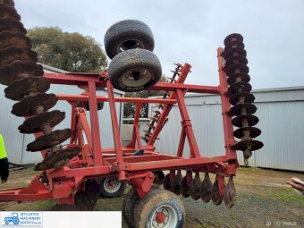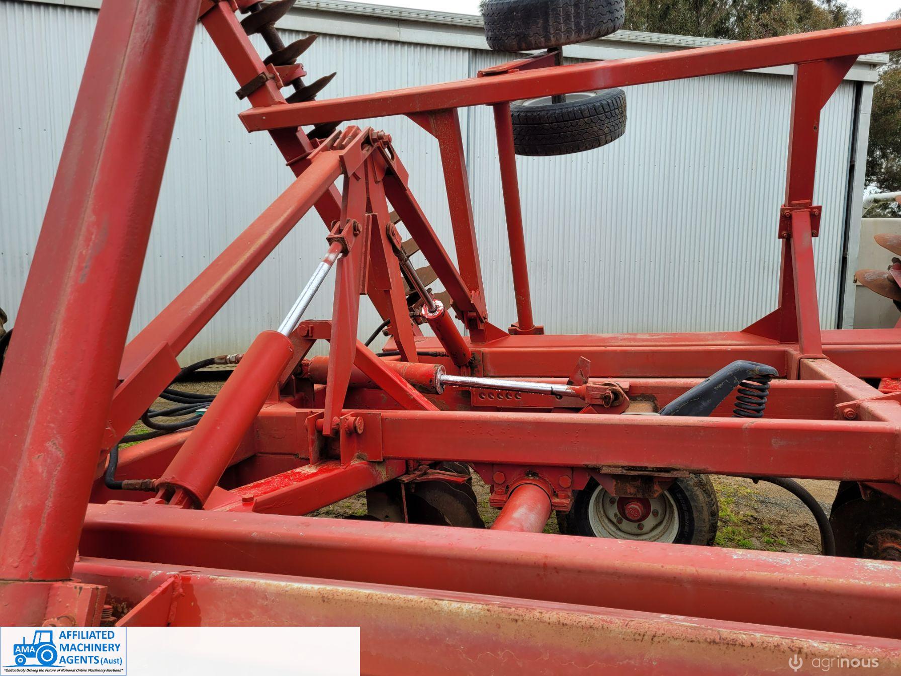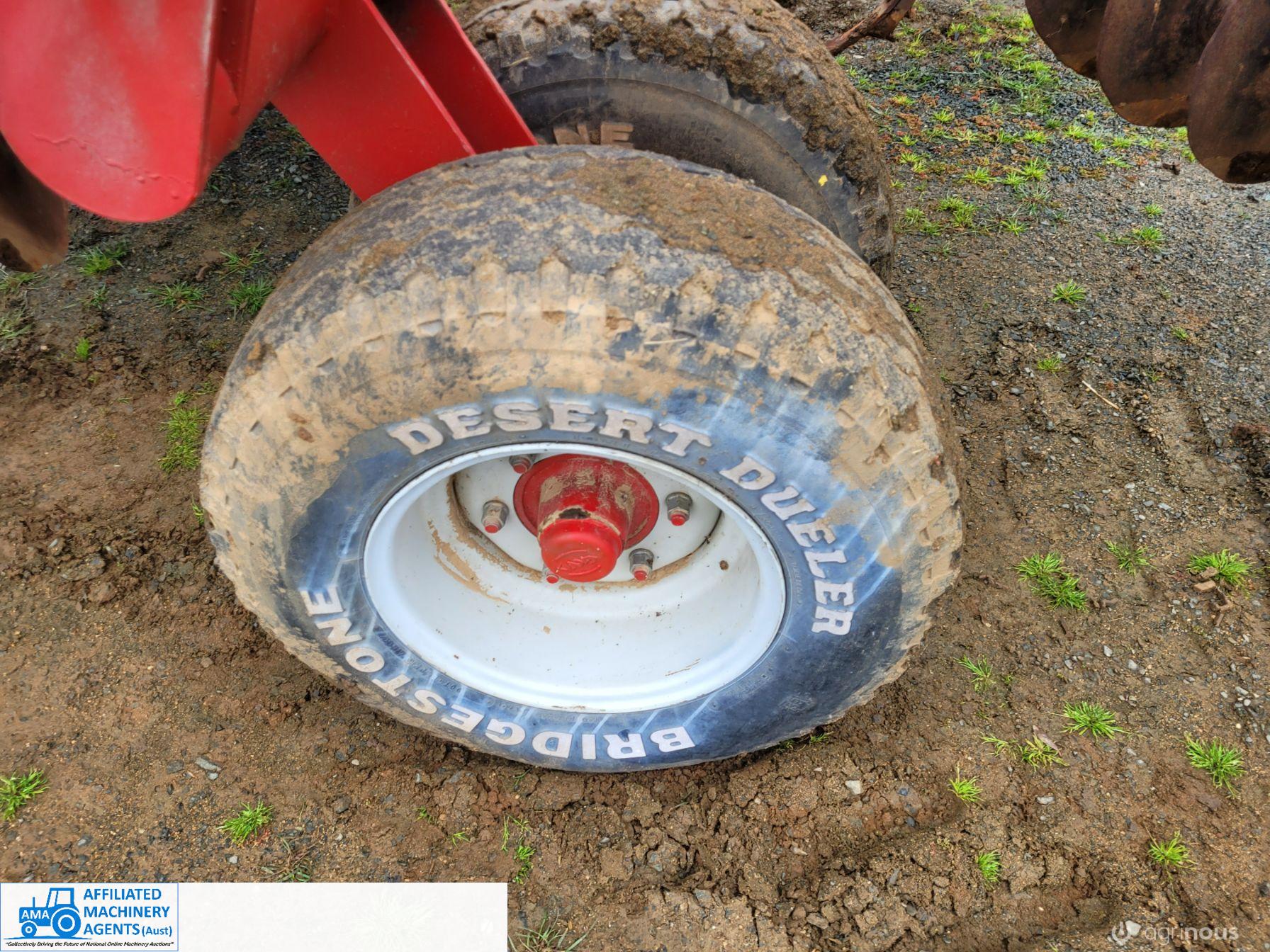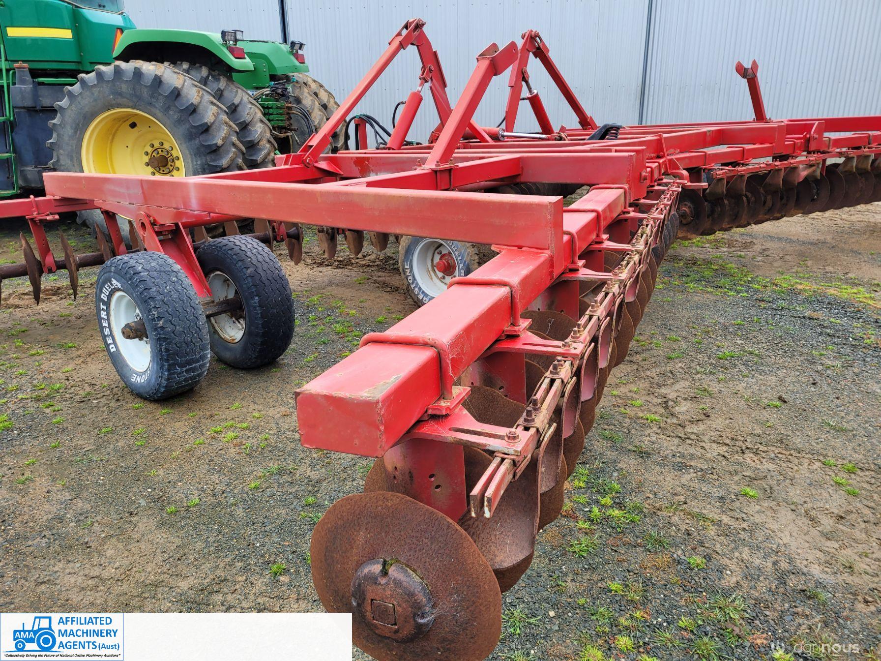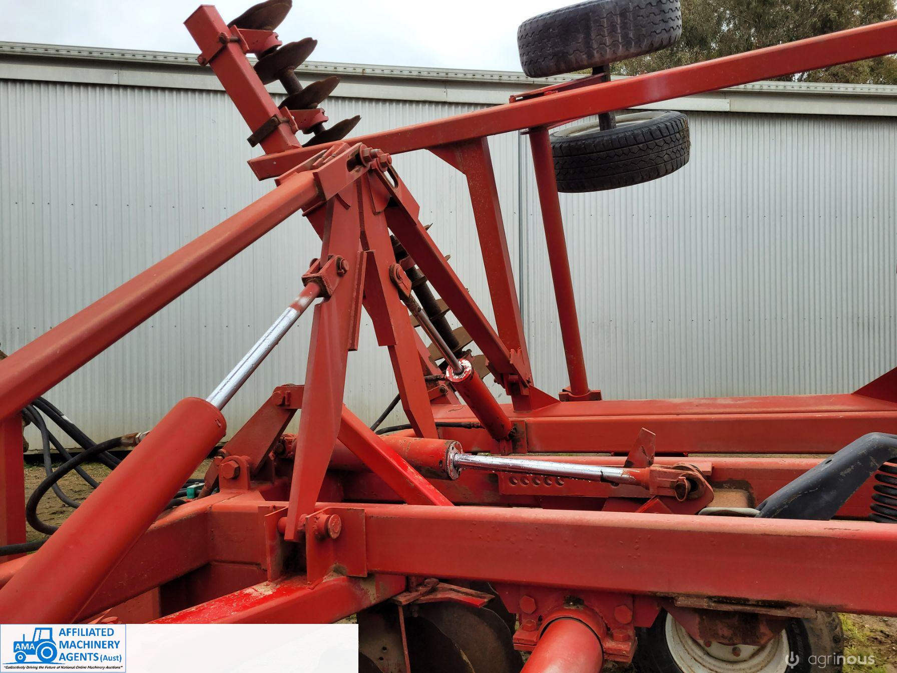 Bush-Hog 78 plate offset Discs, 9m cut, gang bearings seem good, Good solid H/duty frame. Wheel hubs have been upgraded to 4ton specs. All hyd. rams are good, no oil leaks. Front discs 50%, Rear 20%.