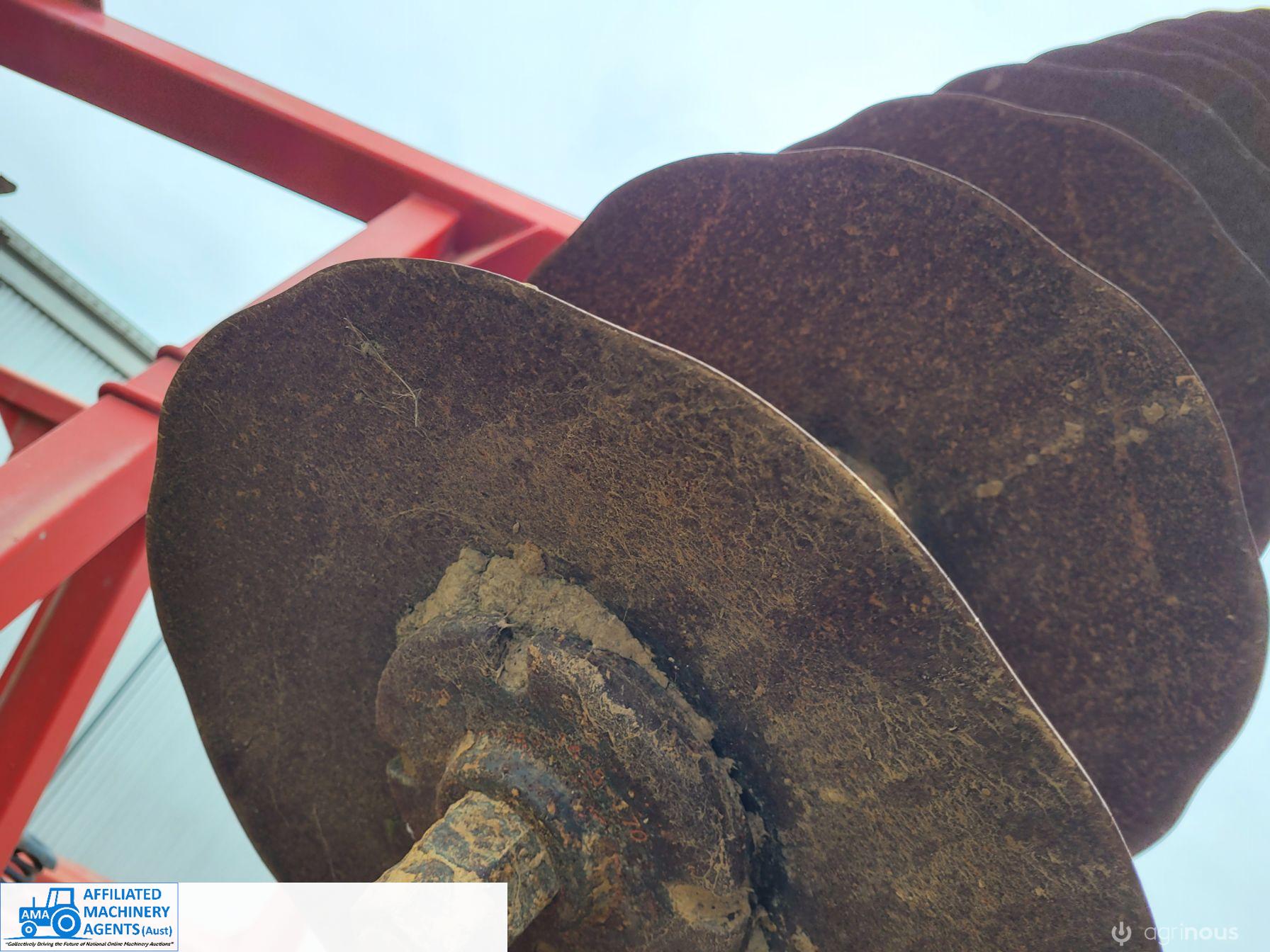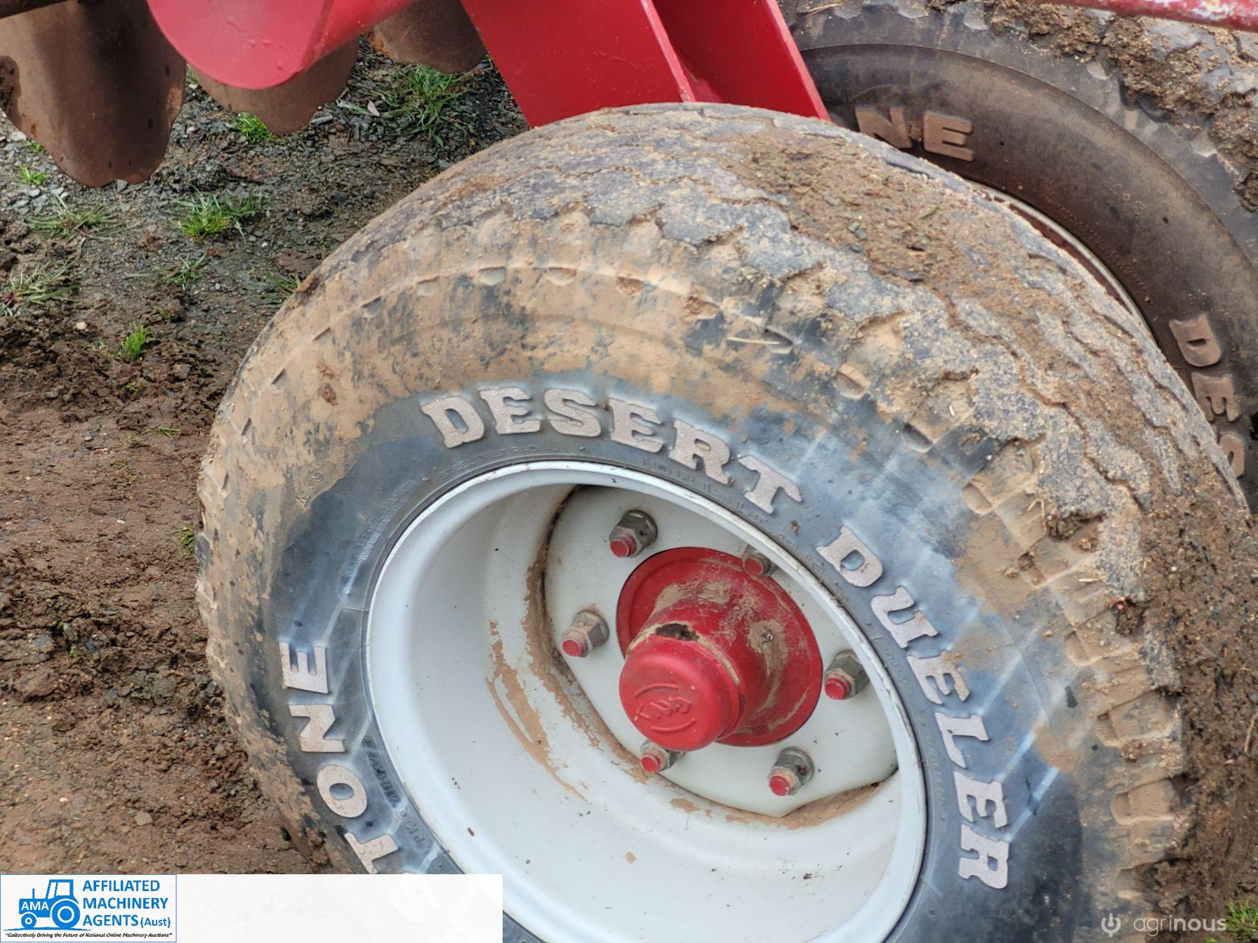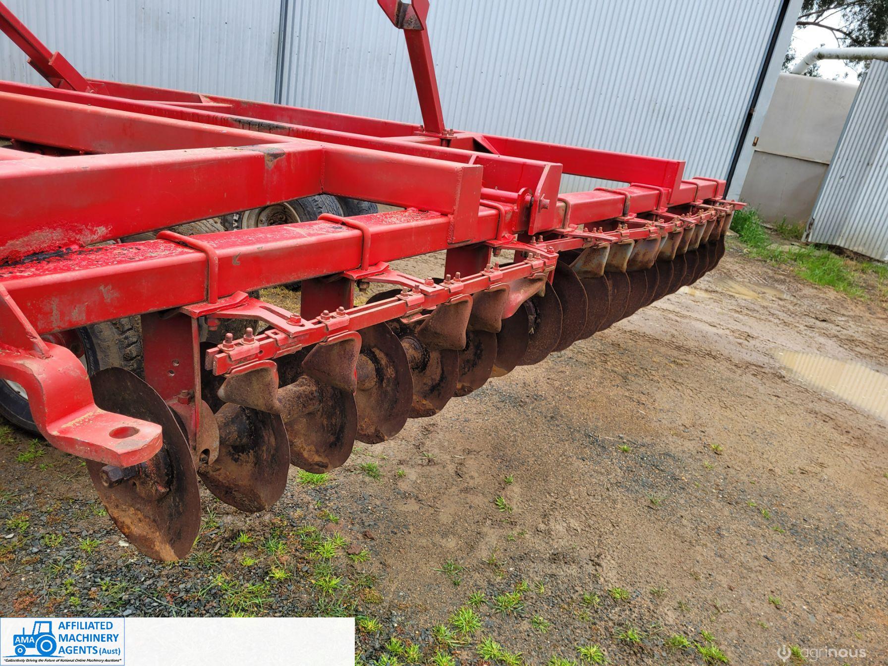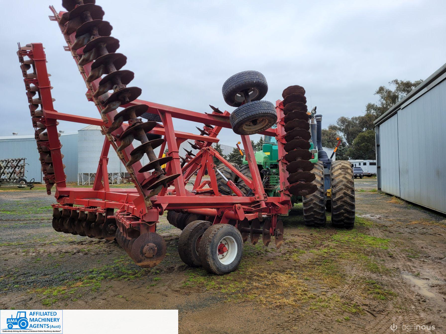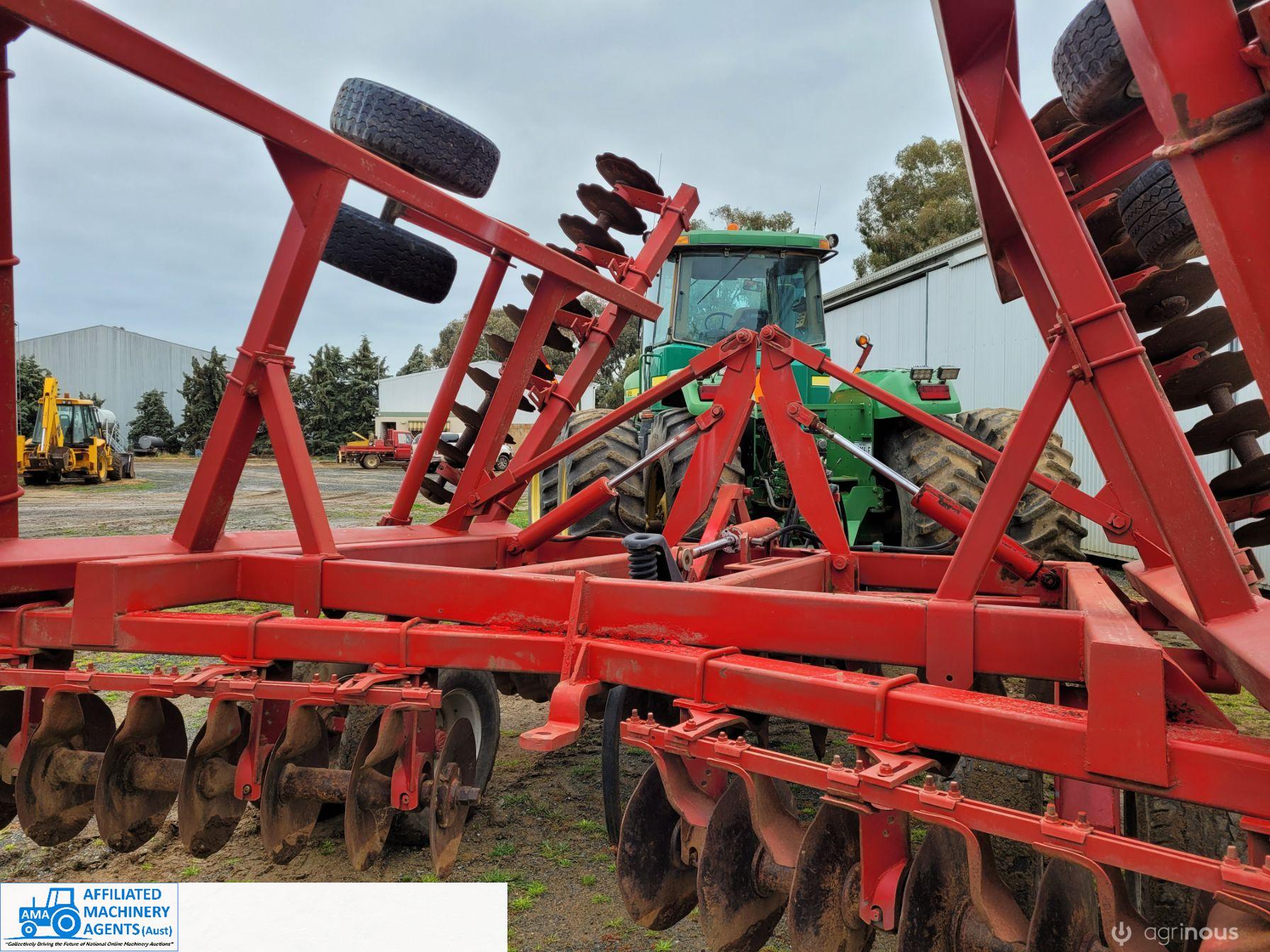 Bush-Hog 78 plate offset Discs, 9m cut, gang bearings seem good, Good solid H/duty frame. Wheel hubs have been upgraded to 4ton specs. All hyd. rams are good, no oil leaks. Front discs 50%, Rear 20%.