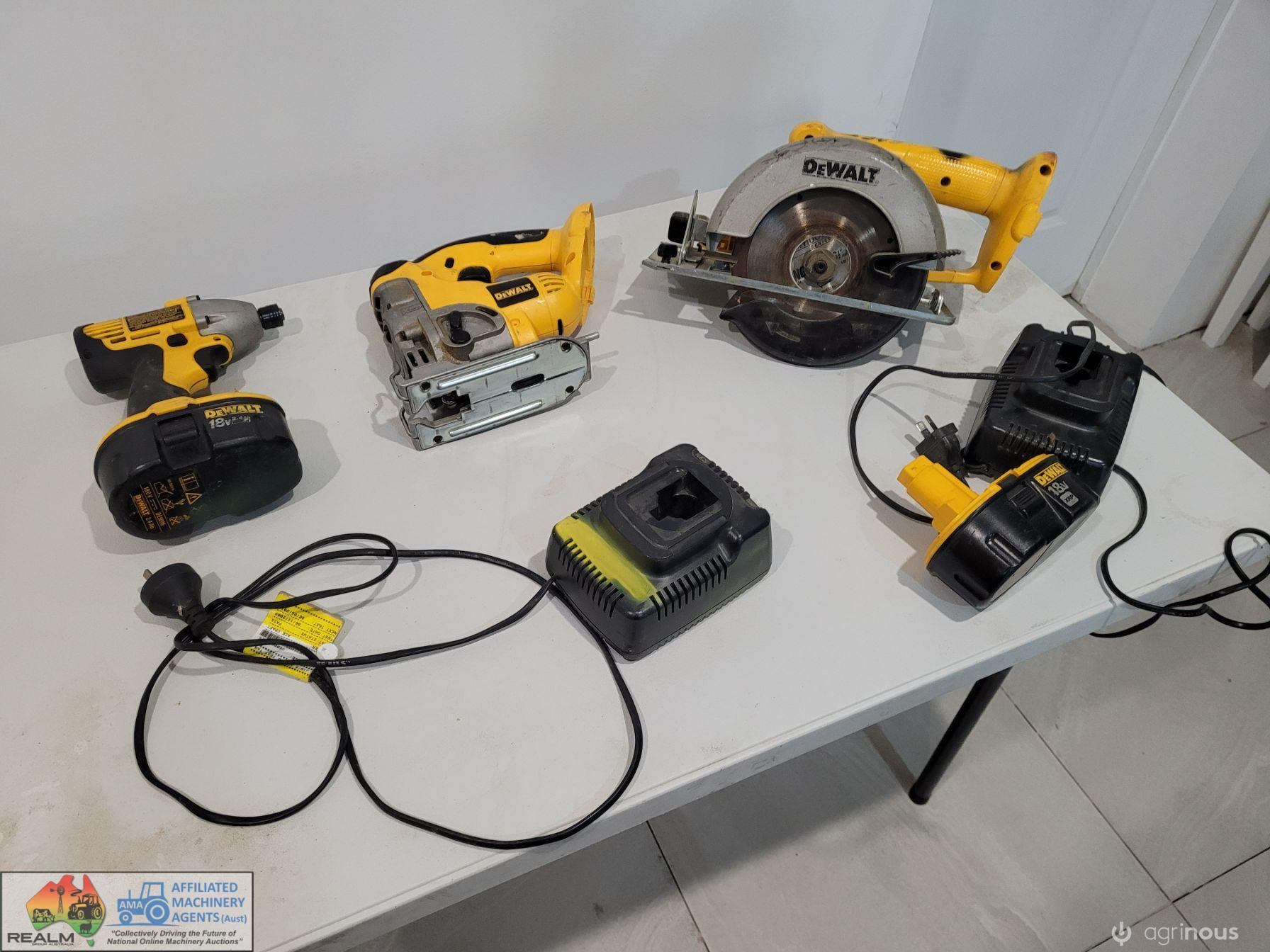 DeWalt 18v Cordless Tools ~ DW056 Driver ~ DC330 Jigsaw ~ DW939 Tungsten Saw ~ 2 Chargers & 2 batteries.