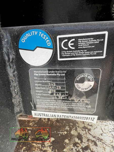 Flip screen , suitable for skid steer loader. Currently has a mixing plate and a 19mm screen for sieve screening soil. Suit new buyer, with less than a day working. Near new condition ~