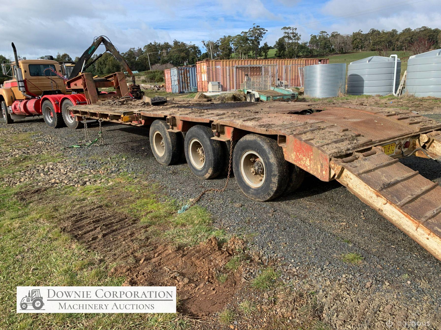 Freighter Low Loader Float; 3.6 meters wide X 8 meters long to beavertail and 0.5 meters to ramps; Hydraulic fold-up ramps; New powerpack to go with float; Currently unregistered; Tyres 25%