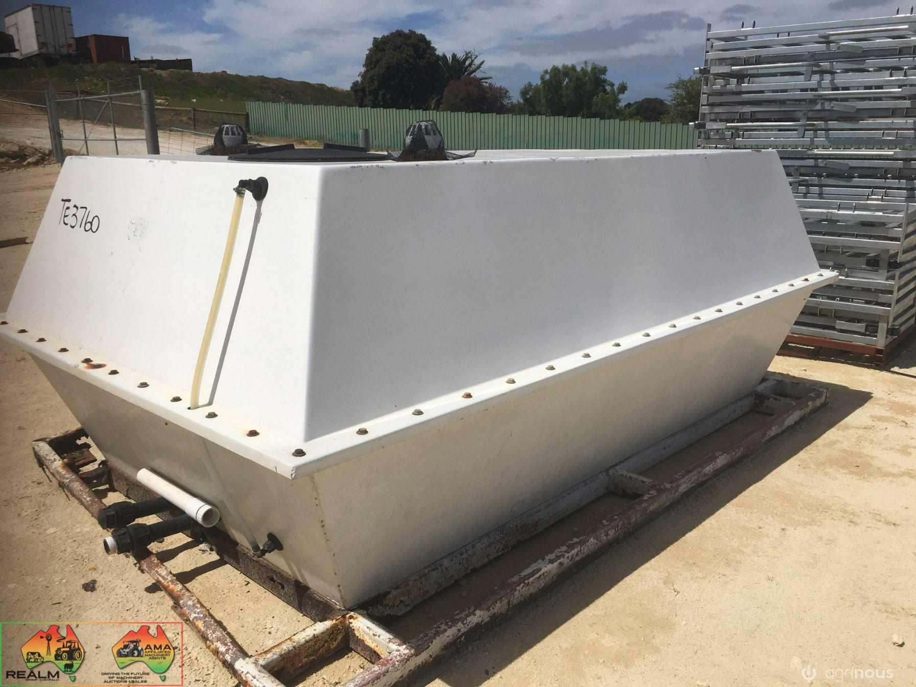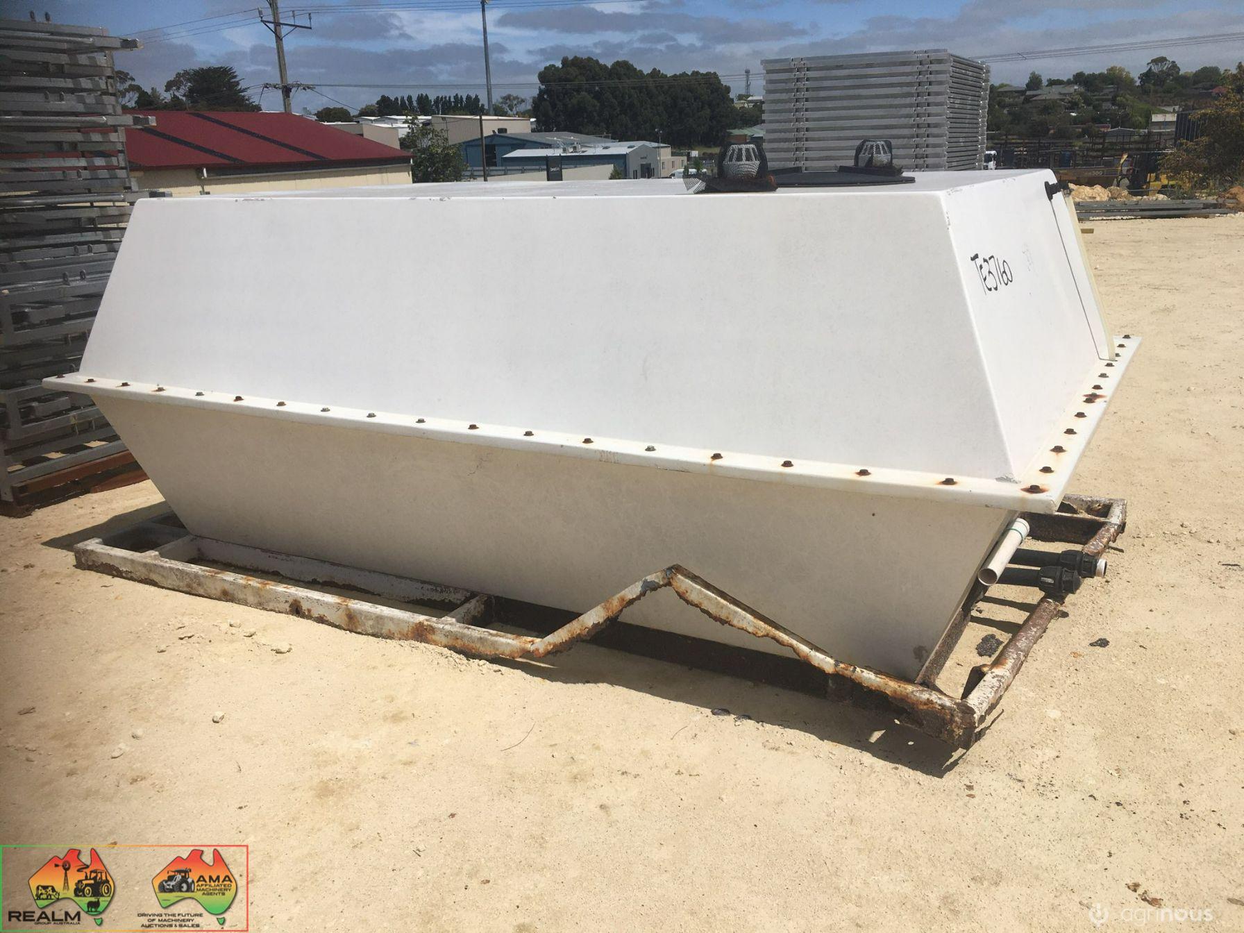 Fully Enclosed Fibreglass Truck Tank ~ Approx 5,000 Ltr ~ Tank in excellent condition ~ Mounted on steel frame (NB: Frame rusted as per photos) ~ Ideally suit Farm Fire Truck, or spray water back-up supply.