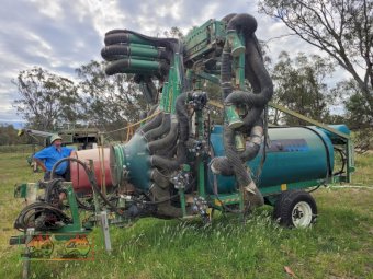Goldacres 3000 Twin Canopy Vineyard Sprayer ~ With 14 flexi-adjustable heads, each with multiple nozzles ~ PTO driven 4 diaphragm pump ~ Hyd drive fan ~ In cab controls ~ Not used for 2 seasons ~ Replaced due to upgrade ~ Believed to be in working condition.