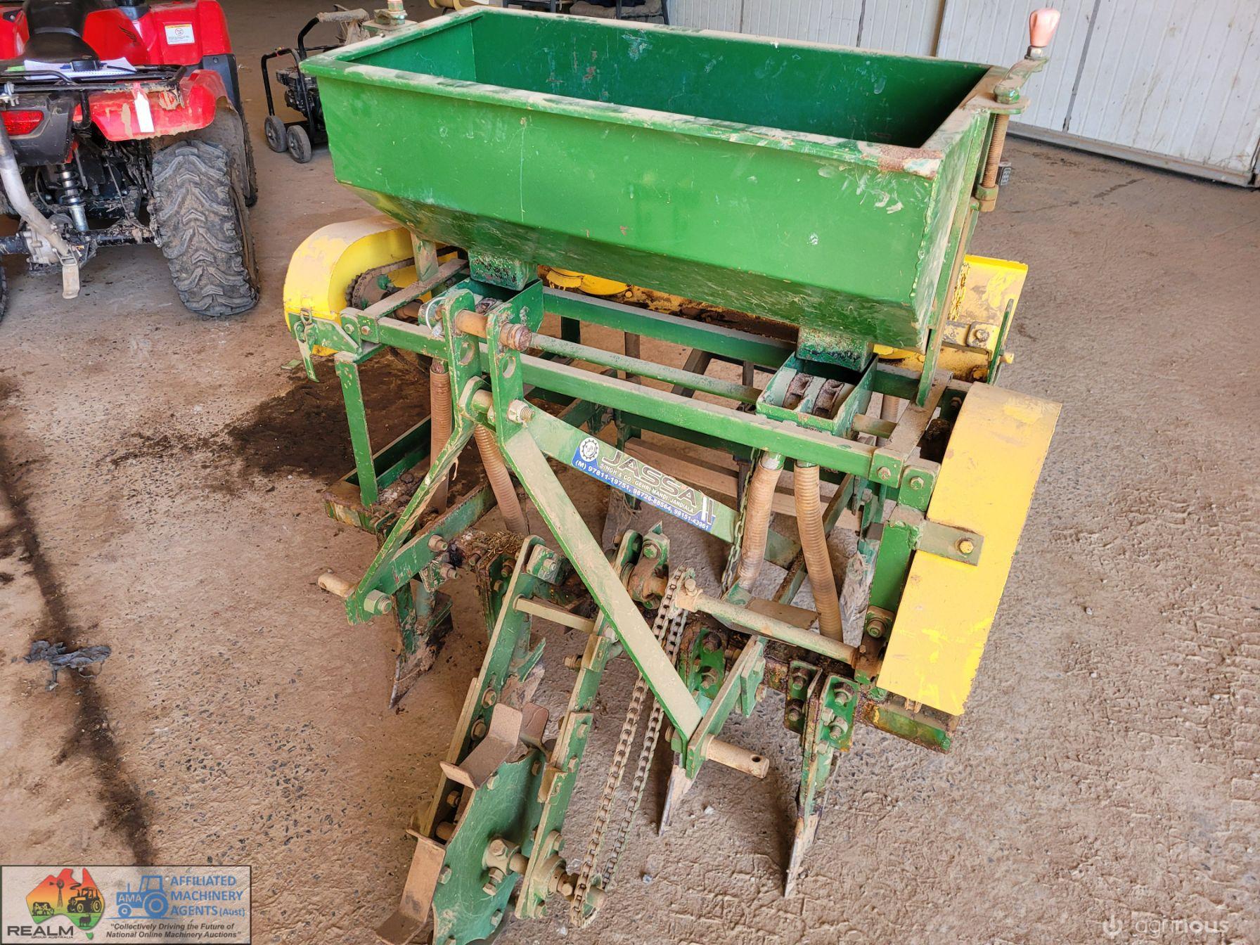 Jassa 2017 Twin Row Precision Seeder ~ Currently set-up for peas/corn at 600mm row spacing ~ 4 row fertilizer tynes for side banding ~ 7th tyne added for T-tape laying ~ 2 new seed distributor heads ~ Fully adjustable machine ~ In good working condition ~ (Cost $5k new)