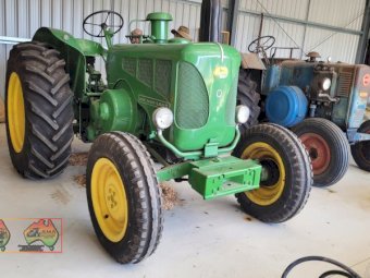 JD - Lanz 'Q' Model ~ One of the last models of the famous Lanz Bulldog made ~ Fully restored & painted in the original John Deere Colour ~ Good maintenance history ~ As new tyres ~ Genuine 5,276 Hrs ~ Only 2nd Owner ~ Selling his beloved collection due to health ~ An immaculate example ready for any COLLECTOR ~ Property Sold ~ (NB: 5% Buyers Premium + GST will be added to sale price of all Lots sold) ~ Contact AMA Agent: Michael Downie 0458 241 242