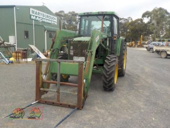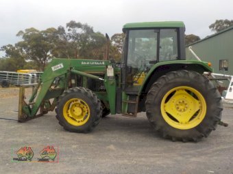 John Deere 6300 FEL, ~ 4.5L 4-cyl diesel ~ 90hp ~ 6,510 hours ~ 24sp Partial power shift transmission ~ Challenge 369-E loader ~ Hydraulic Remotes ~ 3PL ~ PTO ~ Great running tractor