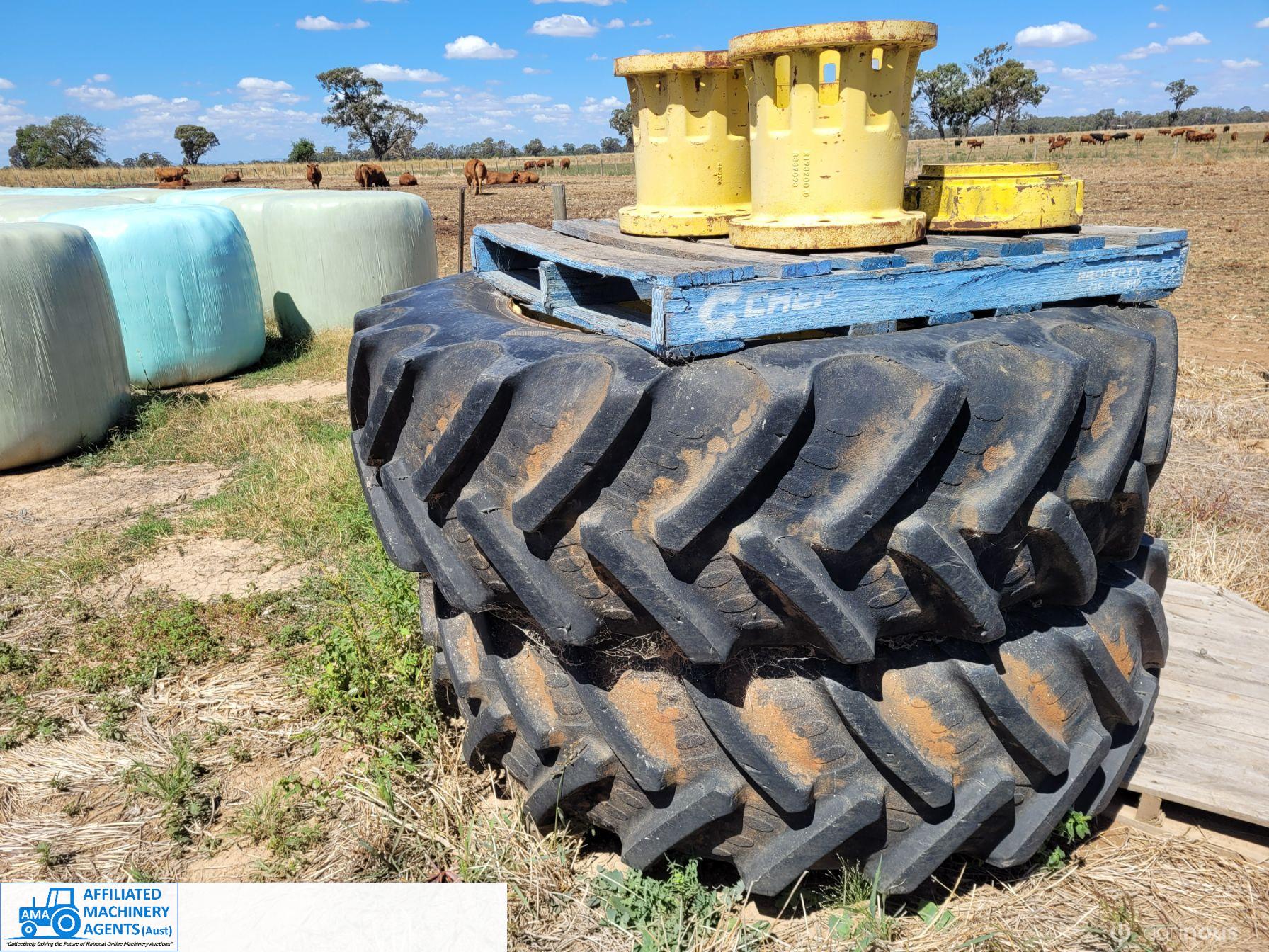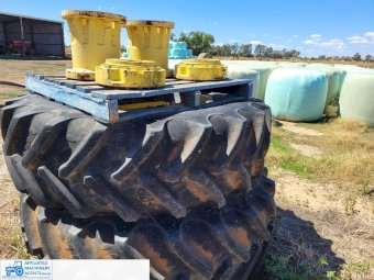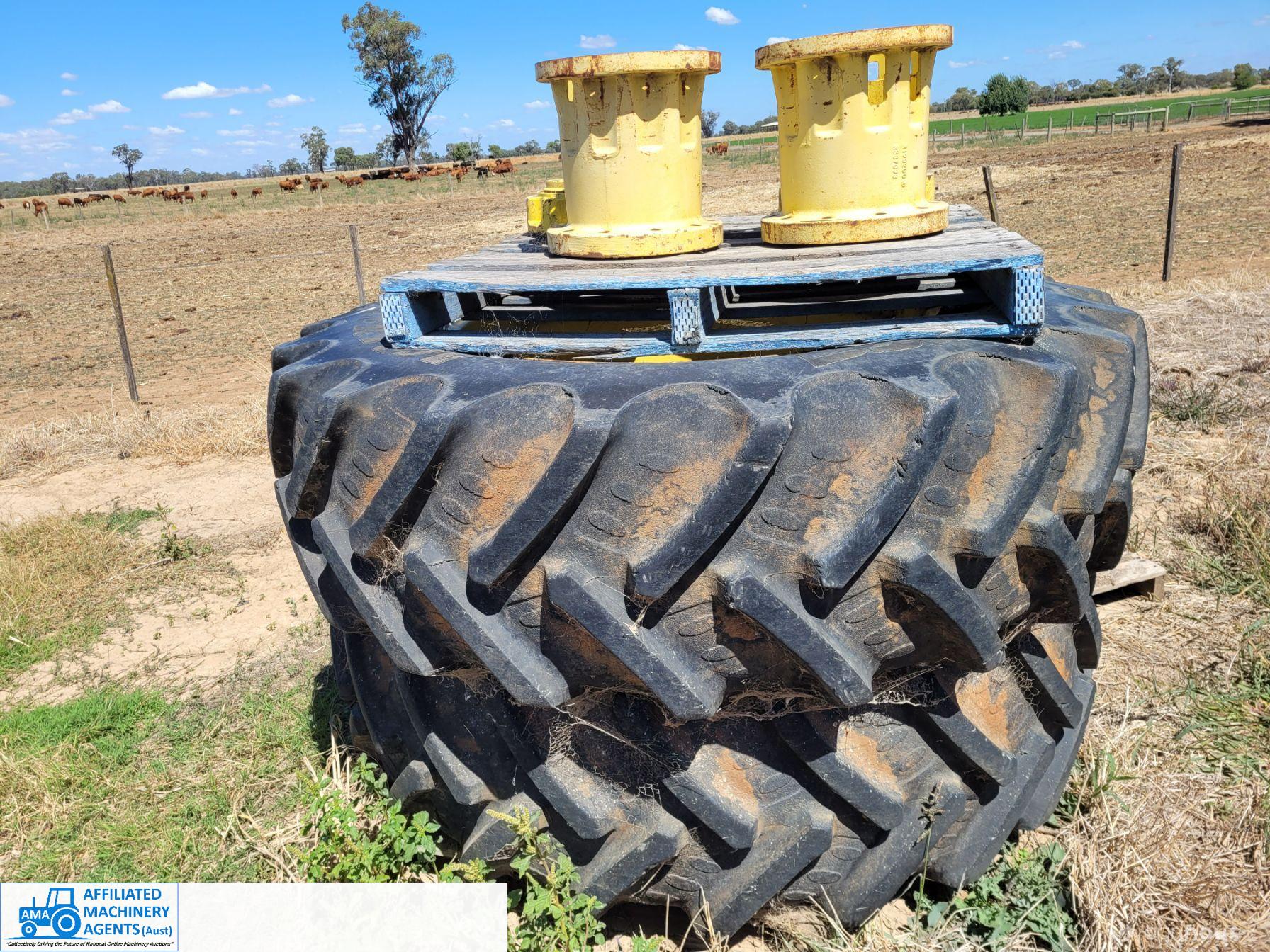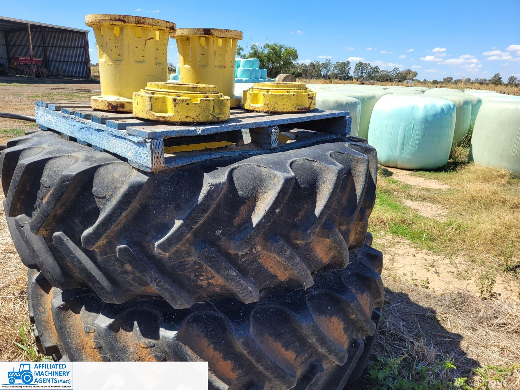 John Deere Dual Wheels with 120mm hub clamps ~ Includes extension hubs & bolts ~ 20.8R42 Tyres = 70% (Property SOLD)