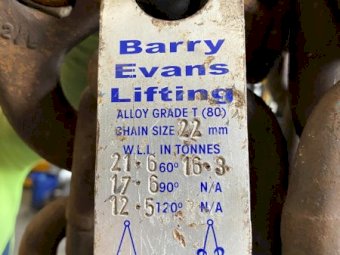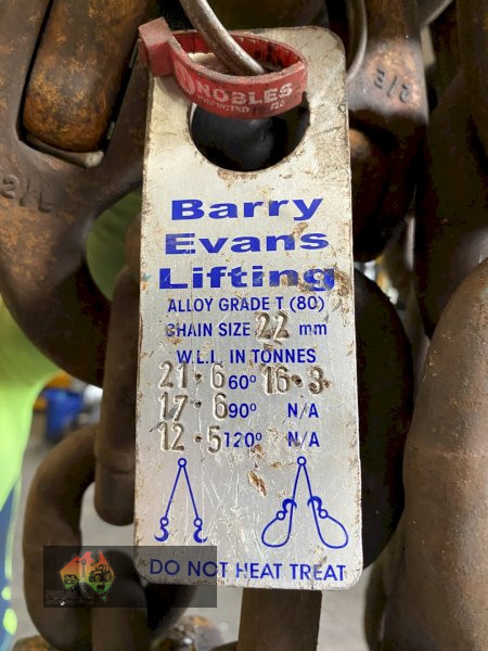 1 set of 2 drop x 21 tonne x 6 metres with shortners . Buyer needs to have certified and will be sold as scrap on invoice.