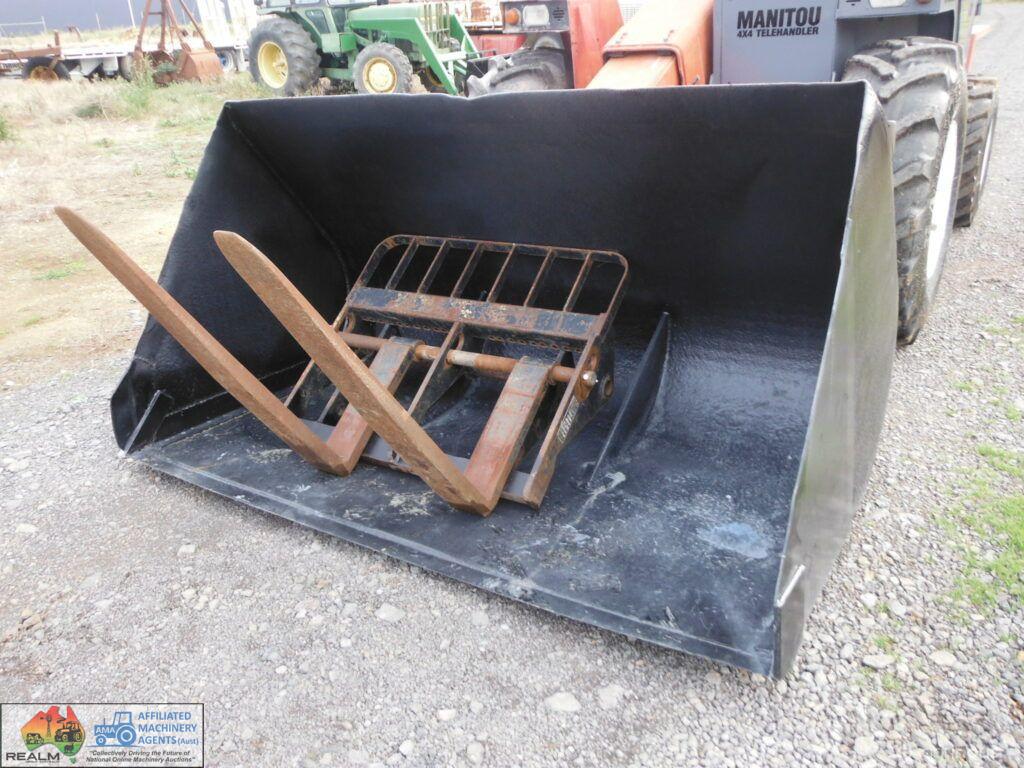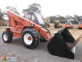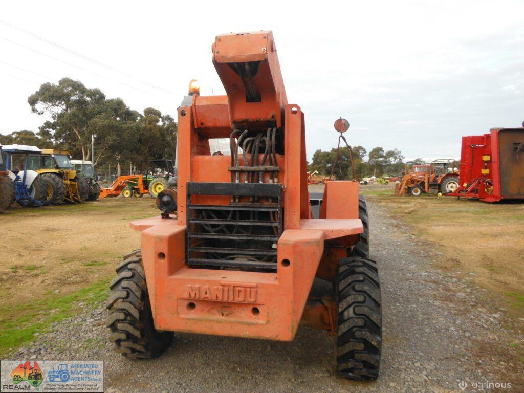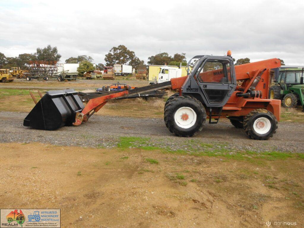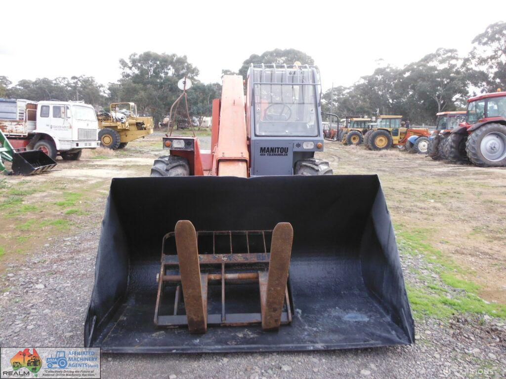 Manitou 4×4 Telehandler ~ starts runs and drives well ~ 4 speed gearbox ~ brakes work ~ Big Gp bucket and forks ~ Good tyres. ~ 5456 Hours