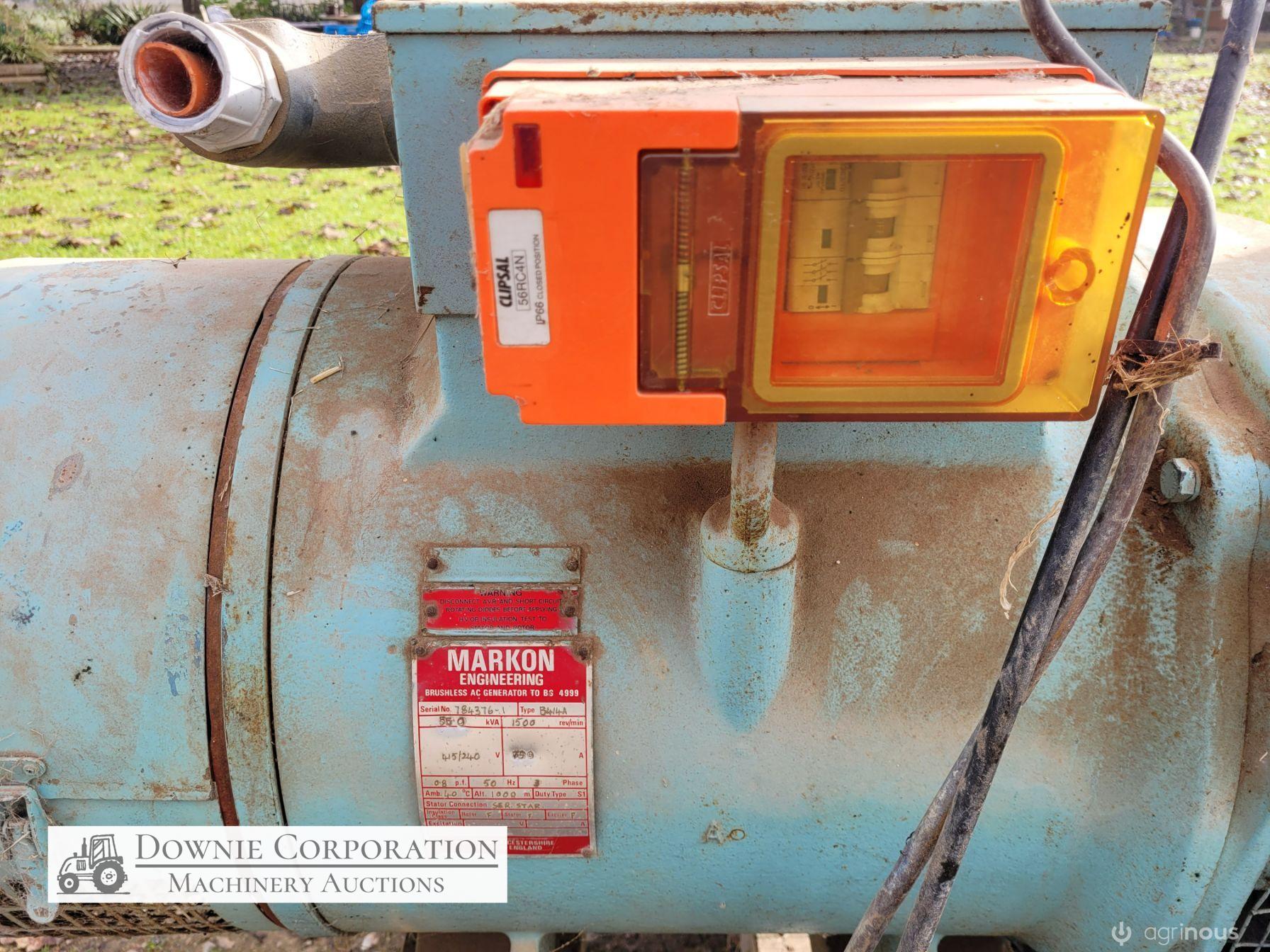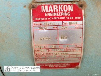 Markon Engineering (England) H/Duty 55KVA Industrial 3 phase Generator with 6.2 Ltr 6cyl Ford diesel industrial engine with watchdog capability. This unit was corporate owned as a back-up supply for power shortages, its hardly been used.