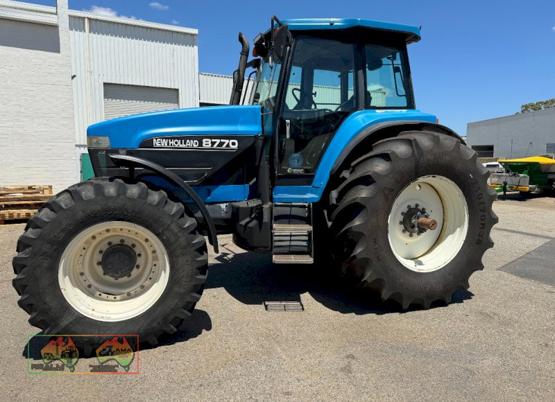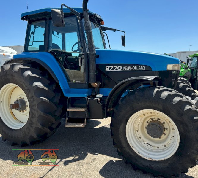 NH 8770 just been through workshop, minor leaks repaired. Good Condition, 8300 hrs, transmission recallabrated, tyres are near new on rear, and front 50%+ , cold AC, reduction PTO drive, New door gas struts, 190HP, Priced to sell. For more Information about this item call Dale McCleary 0474 230 633 or 1300 GO SELL
