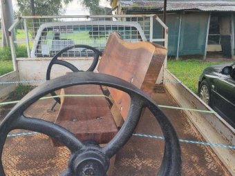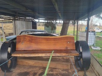 Hand Made New Redgum Seat on Cast Wheels - A very nice piece of furniture.