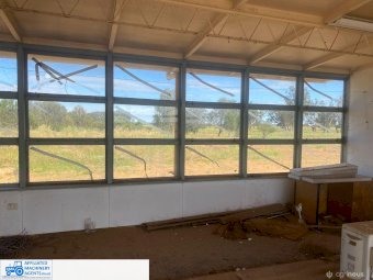 Relocatable School Class Room ~ on steel girder sub-frame ~ One open plan room with part-divider ~ Make an ideal Worker's Smoko room, or Teenager's Billiard/Games room.