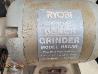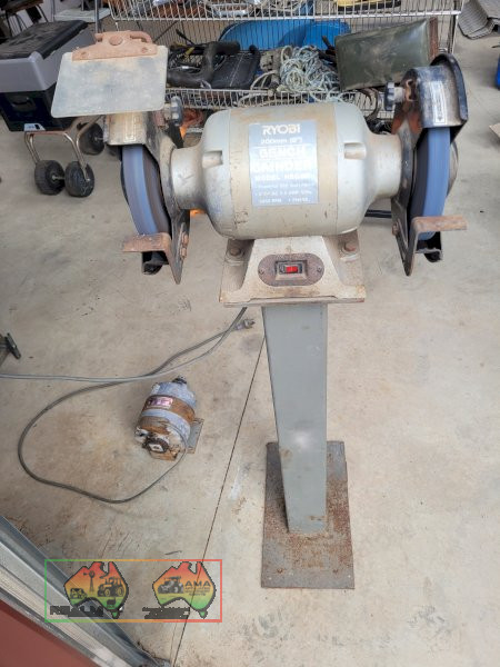 Ryobi HBG8R Bench Grinder ~ Mounted on pedestal ~ Smooth & Course stones ~ Good operating cond. ~ Payment DUE within 24 Hrs of Invoice ~ To be Sold as-is, prior inspection recommended. ~ NB: This item is GST exempt. ~ A Buyers Premium of 5% (+GST) applies to all Lots. ~ If you wish to enquire further about our listings, please Contact AMA Agent: Michael DOWNIE on 0458 241 242 or email michaeld@amasales.com.au