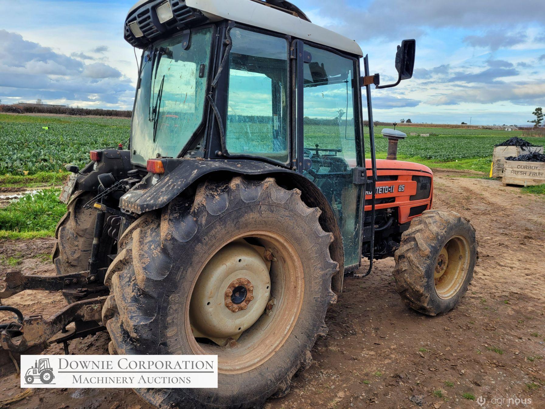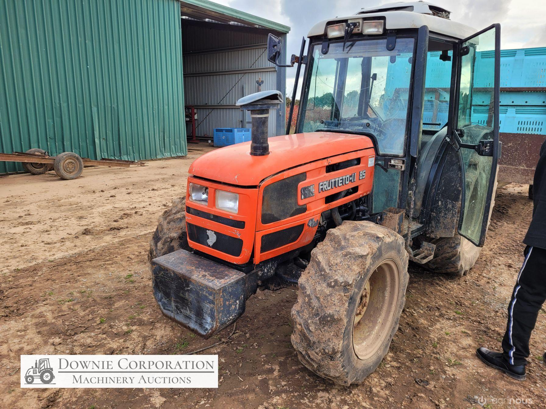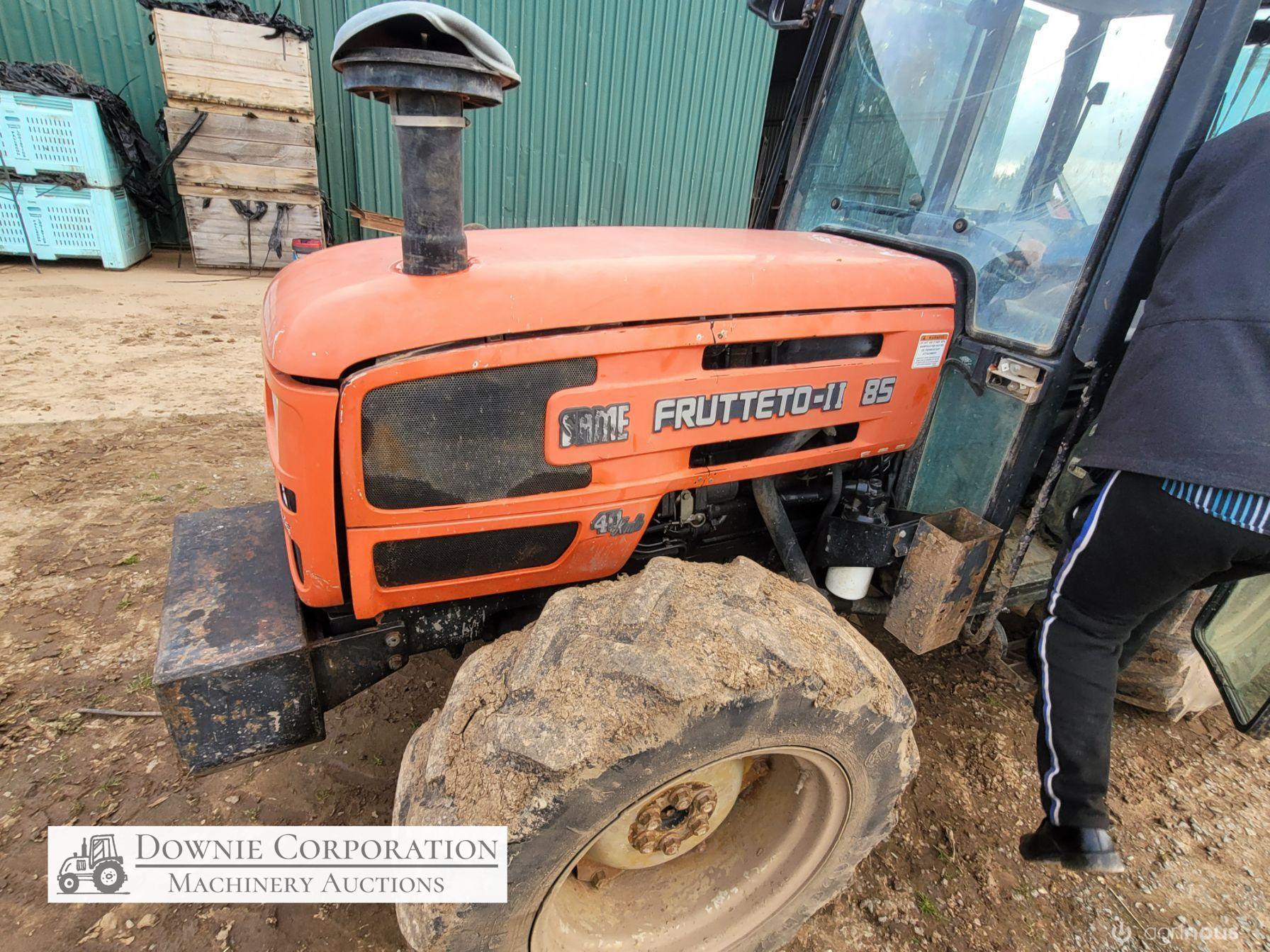 Same Frutteto-II Orchard Tractor; 85Hp; FWA; Cabin with A/c & radio; 5,146 Hrs; Tyres R=60% F=5%. Just recently serviced. Starts, runs & drives well (see video)
