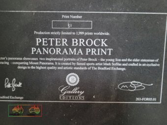 Limited Edition Signed Peter Brock Panorama Print (No. 51/1999) ~ Payment DUE within 24 Hrs of Invoice ~ To be Sold as-is, prior inspection recommended. ~ NB: This item is GST exempt. ~ A Buyers Premium of 5% (+GST) applies to all Lots. ~ If you wish to enquire further about our listings, please Contact AMA Agent: Michael DOWNIE on 0458 241 242 or email michaeld@amasales.com.au