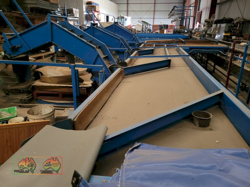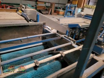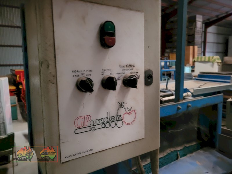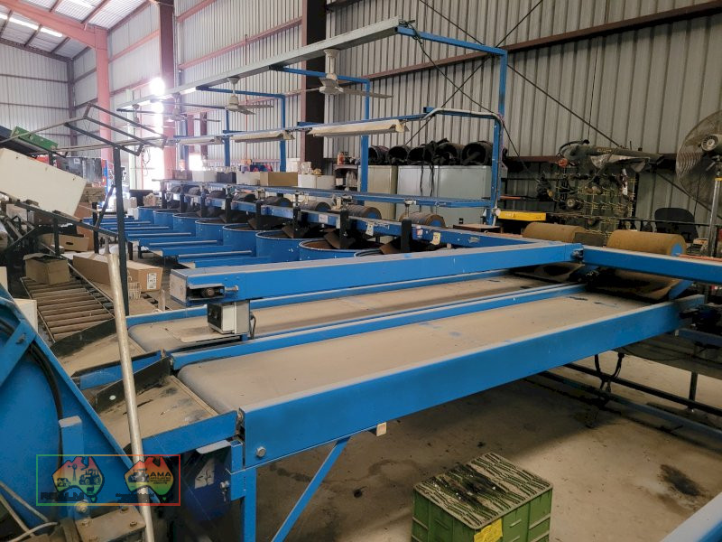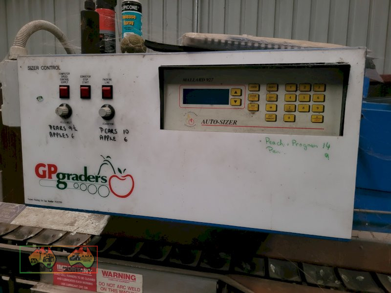 Single Row Pomme Fruit Grader ~ Manufactured & installed by GP Graders ~ A complete system from Bin Tipper & Stacker, to wash, scrub, dry & waxing ~ Computerized sorter based on fruit weight ~ Label station ~ Numerous pack-out stations ~ This is a complete functioning system, well serviced & in good operating condition.