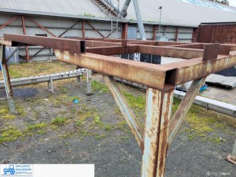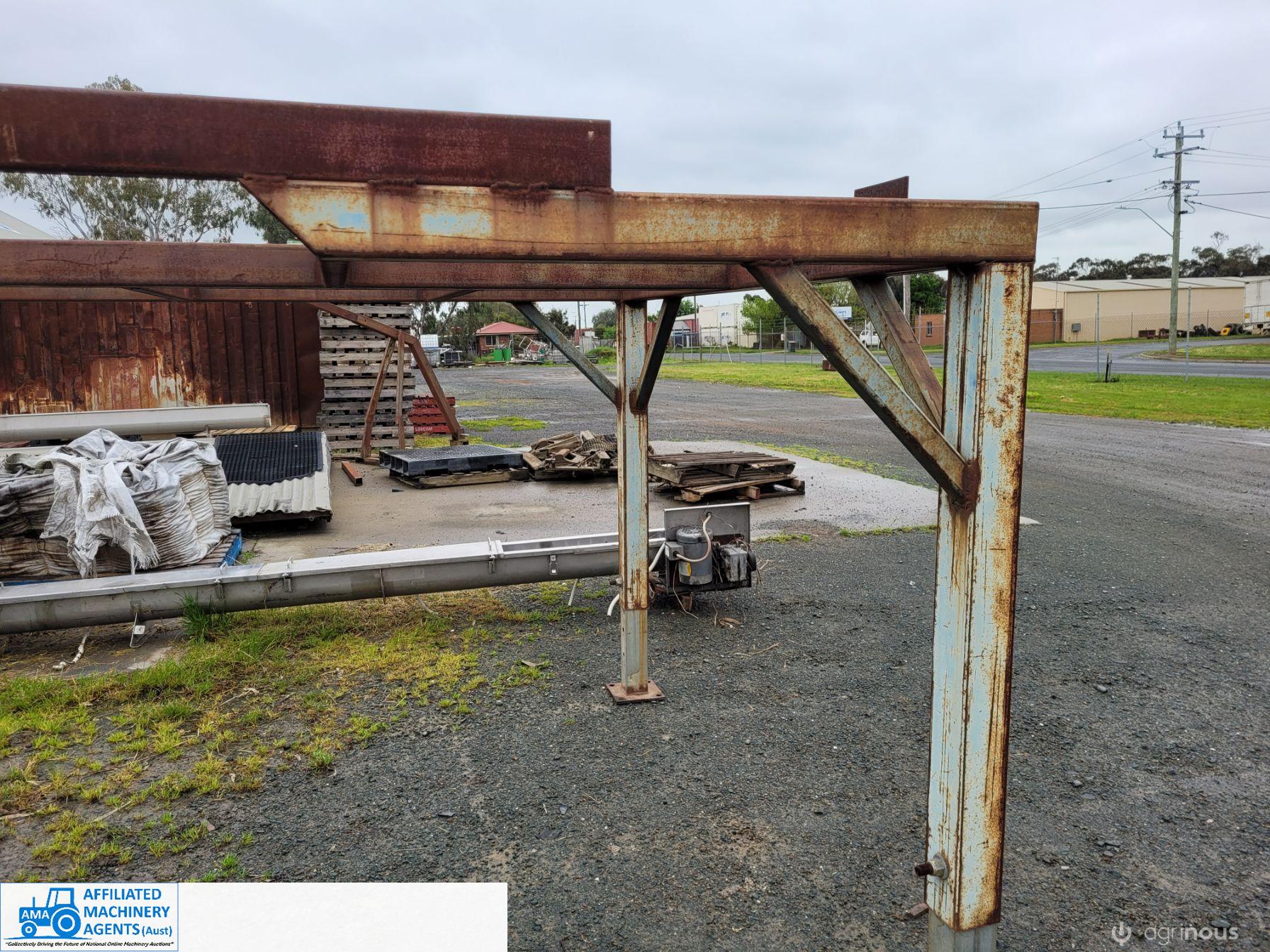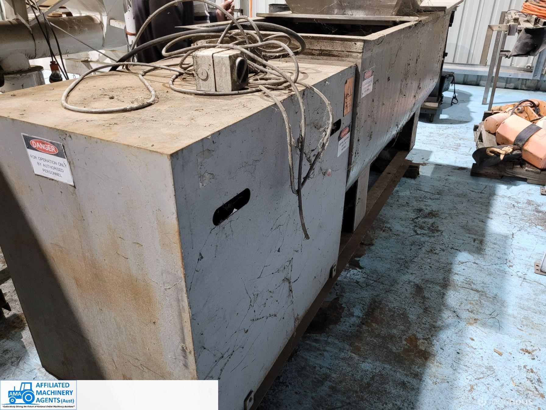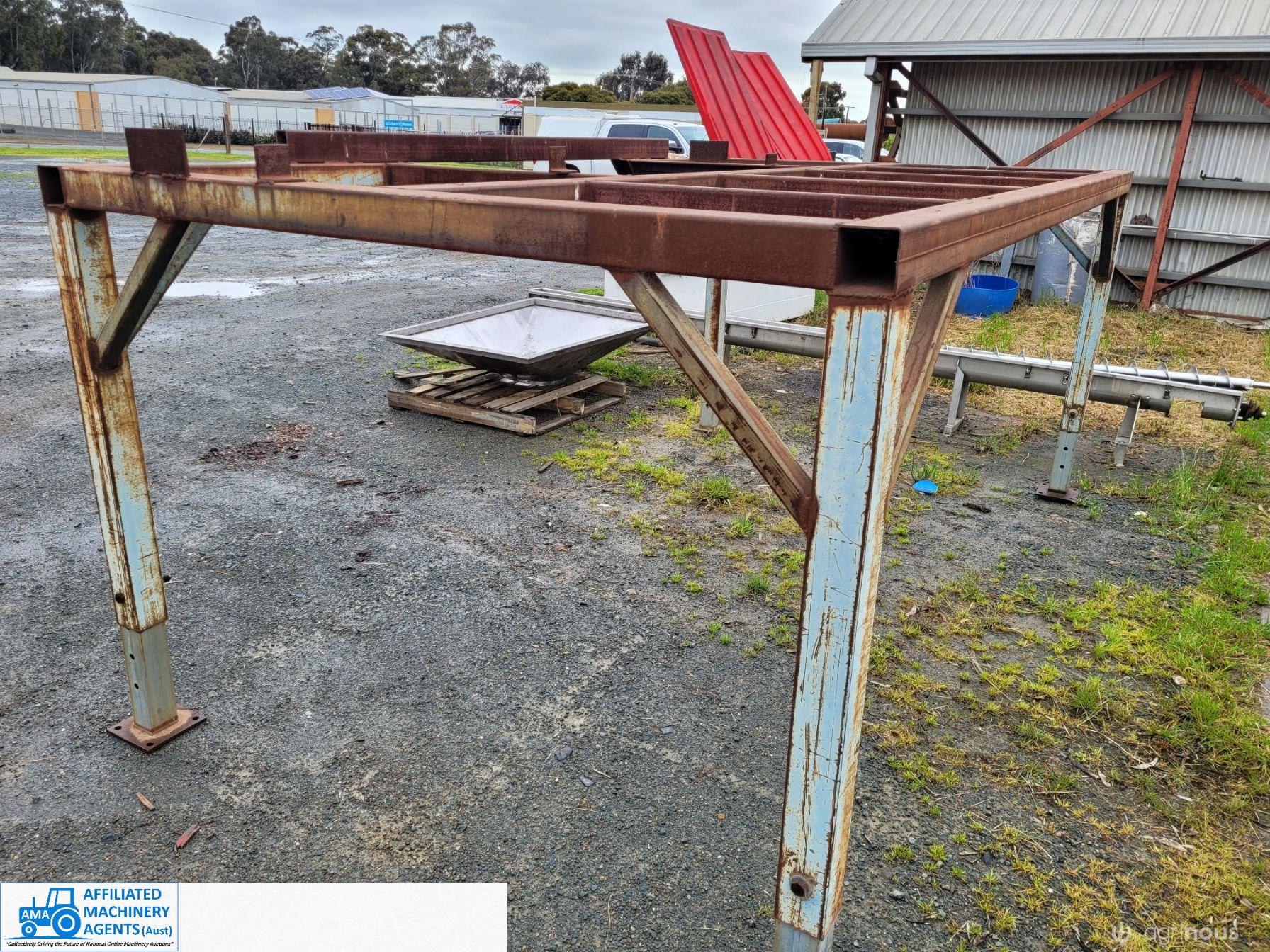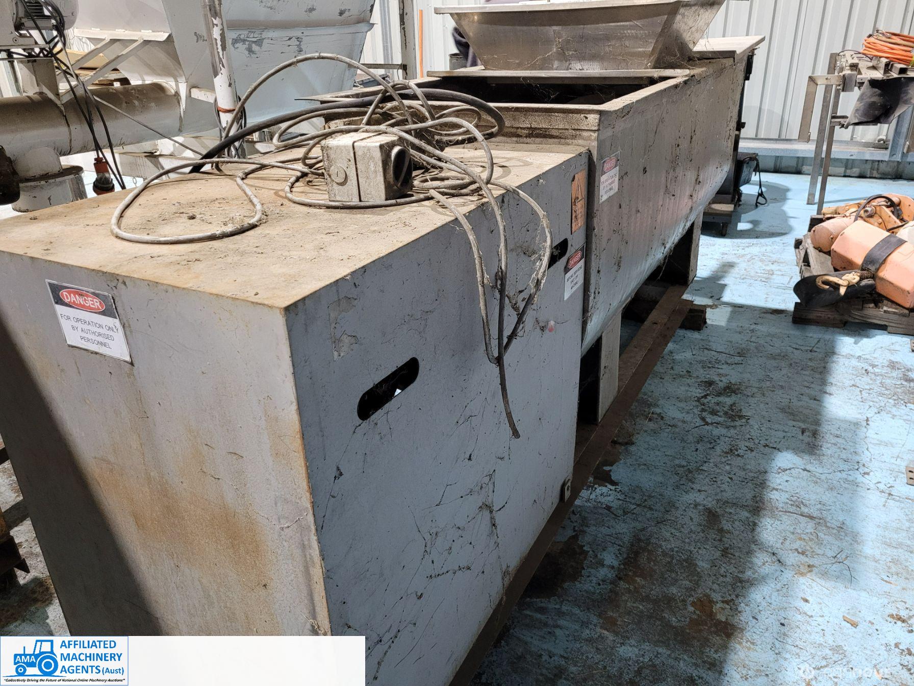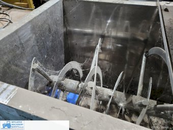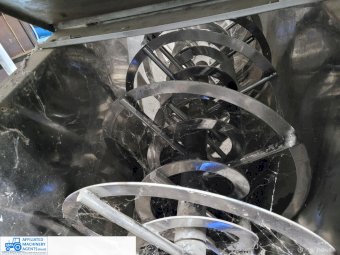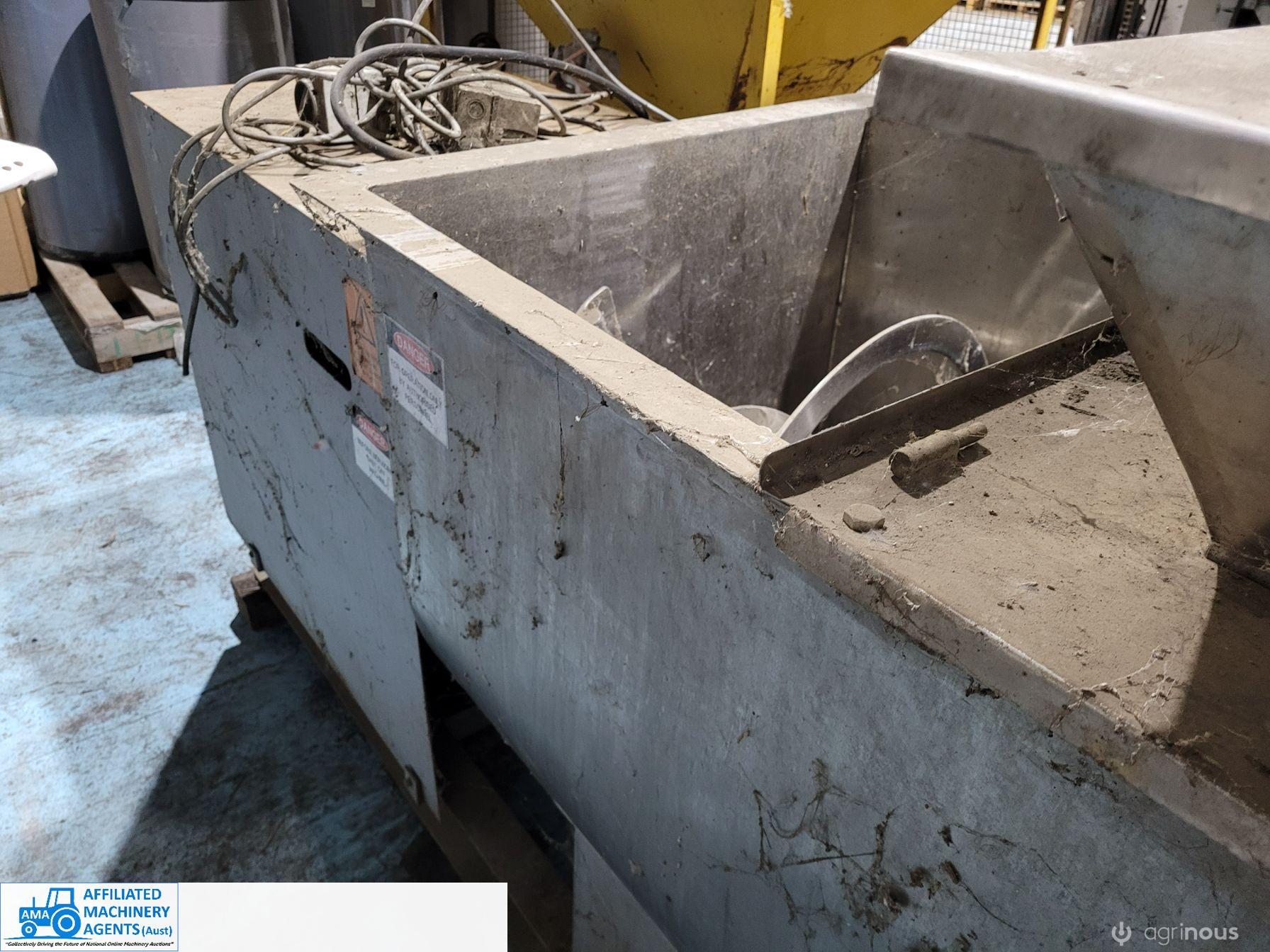 Stainless Steel Ribbon Blender, food grade, hardly used as-new working condition (purchased new for $28,000). Also includes solid steel stand to suit 4m x 2.2m with adjustable legs.