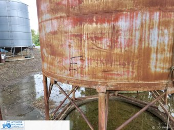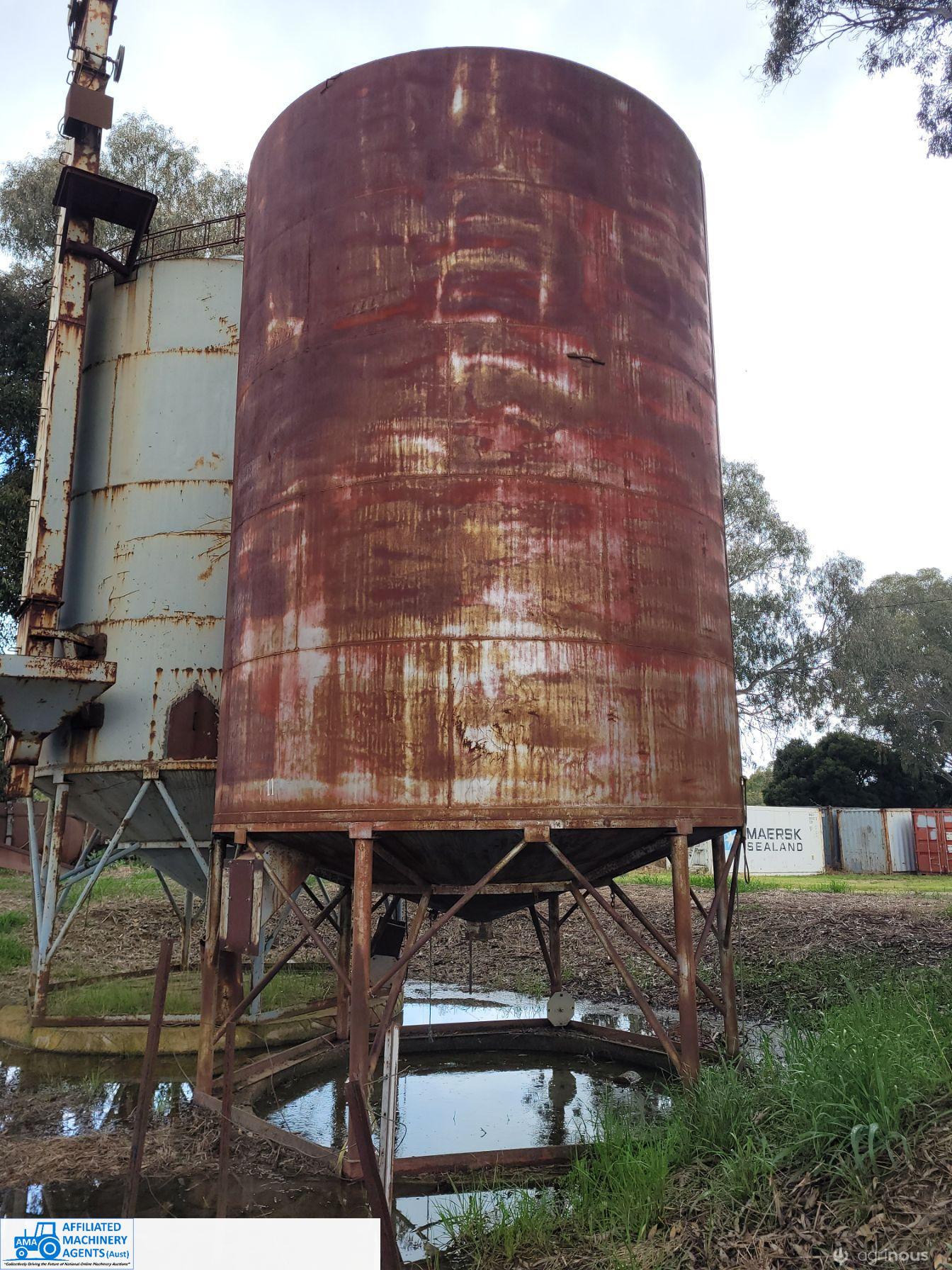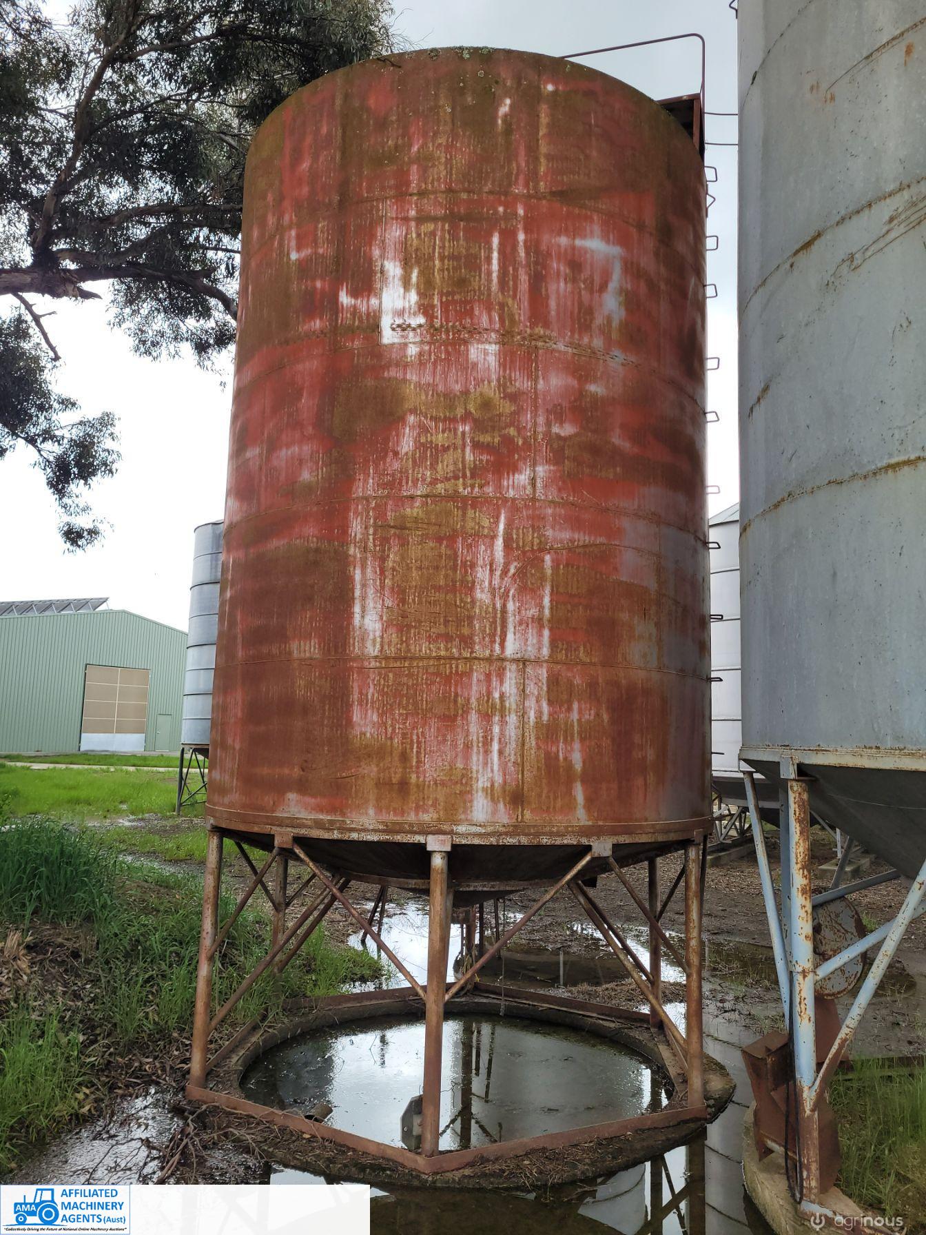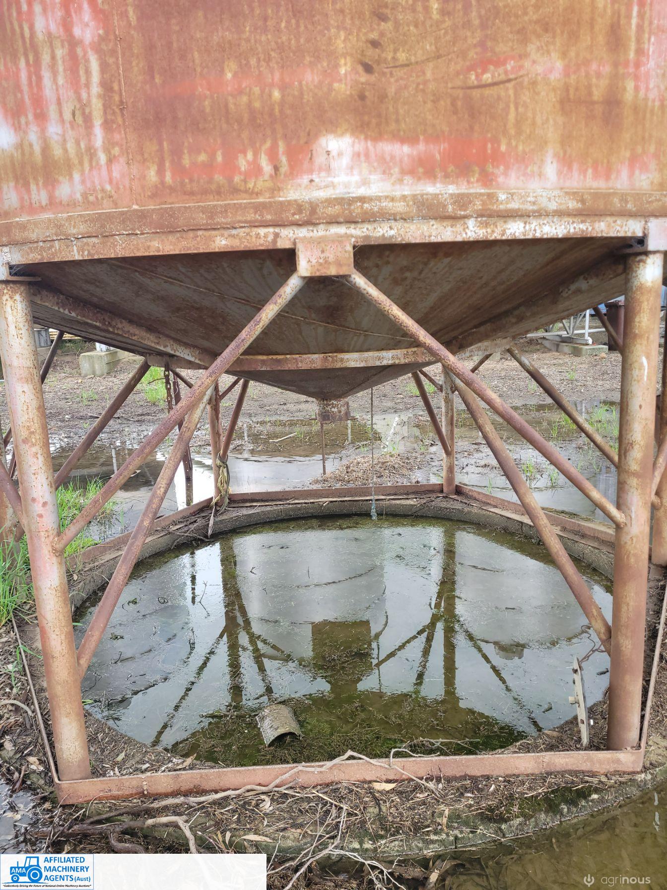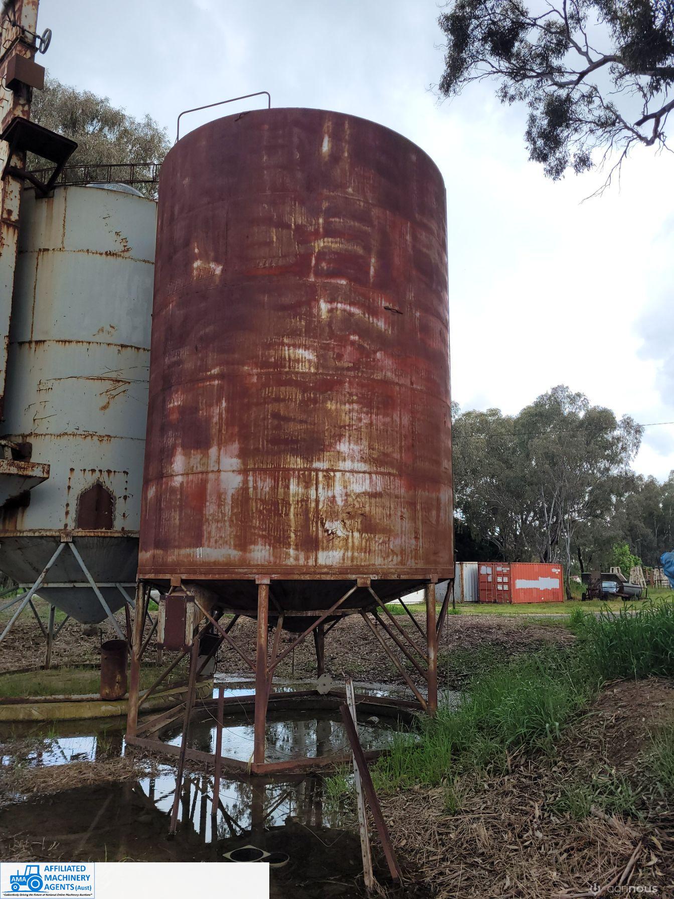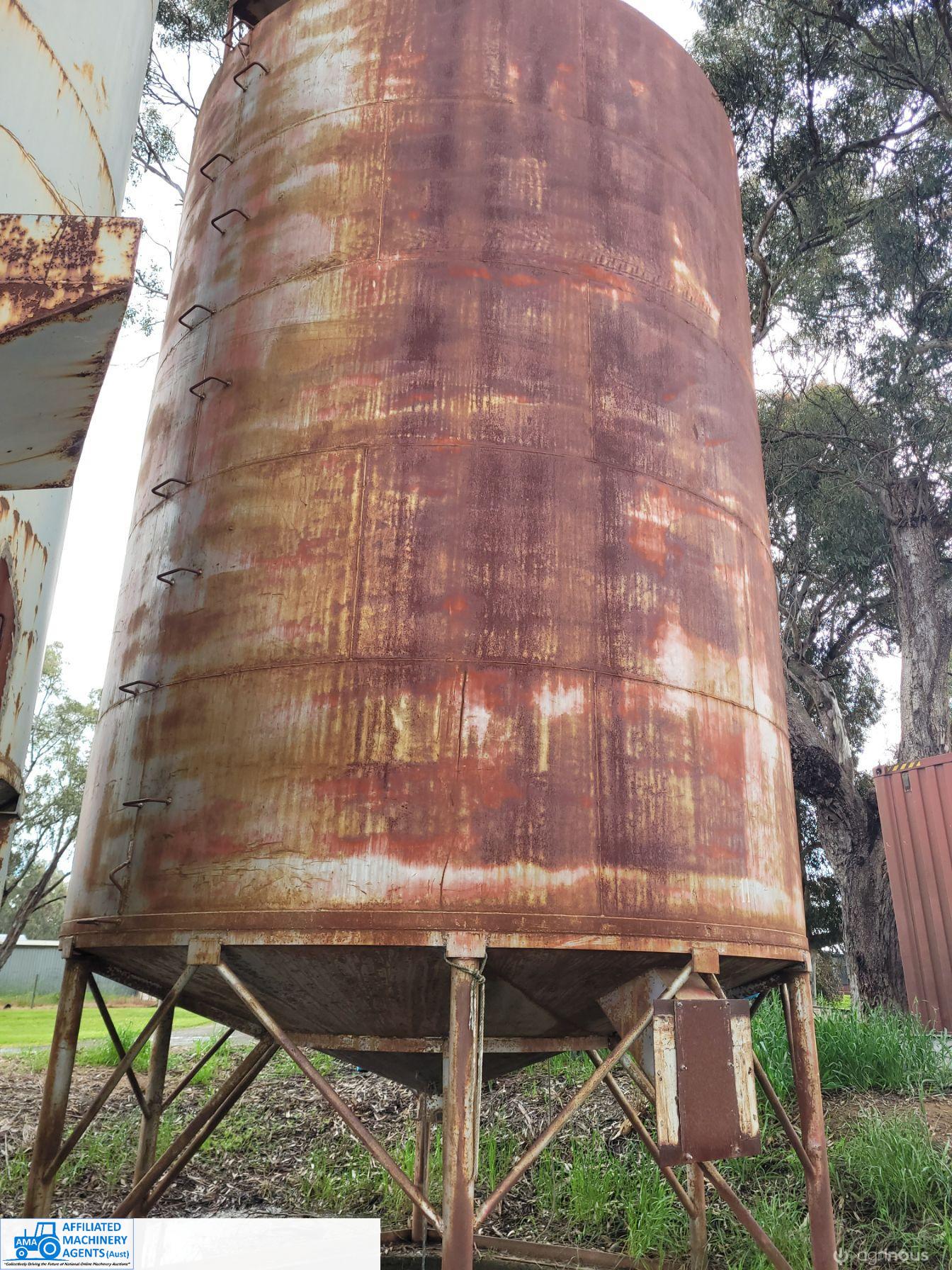 Silo ~ Solid Steel construction, no internal rust or damage, shallow cone. 3.5m round & body 4.8m (total length unknown) - Approx 53 cubic metre capacity. ~ (NB: 5% Buyers Premium + GST will be added to sale price of all Lots sold) ~ Contact AMA Agent: Michael Downie 0458 241 242