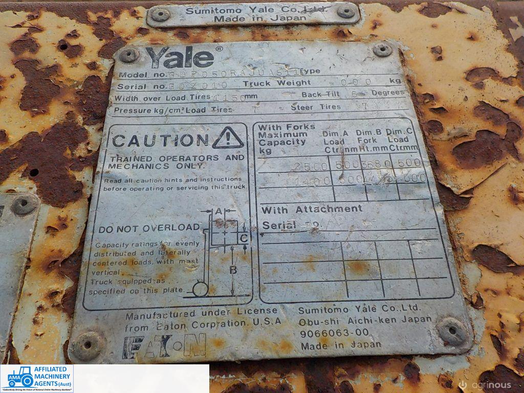 Sumitomo Yale Forklift ~ 2.5 ton, Diesel motor, 5,138 Hrs, Has brake’s, Ram’s are leaking