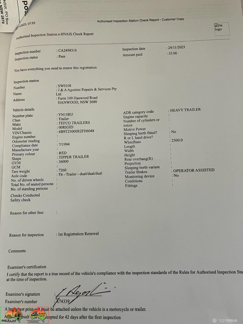 ( Current NSW Roadworthy / Pink Slip Just Completed 24/11/23 )
