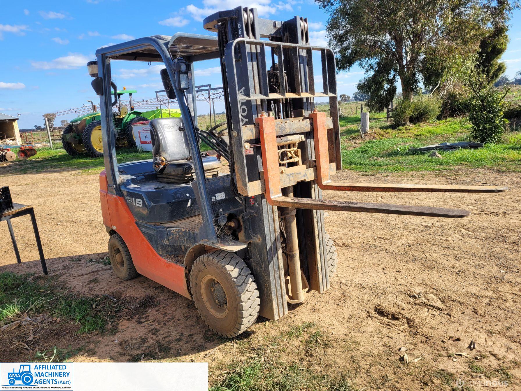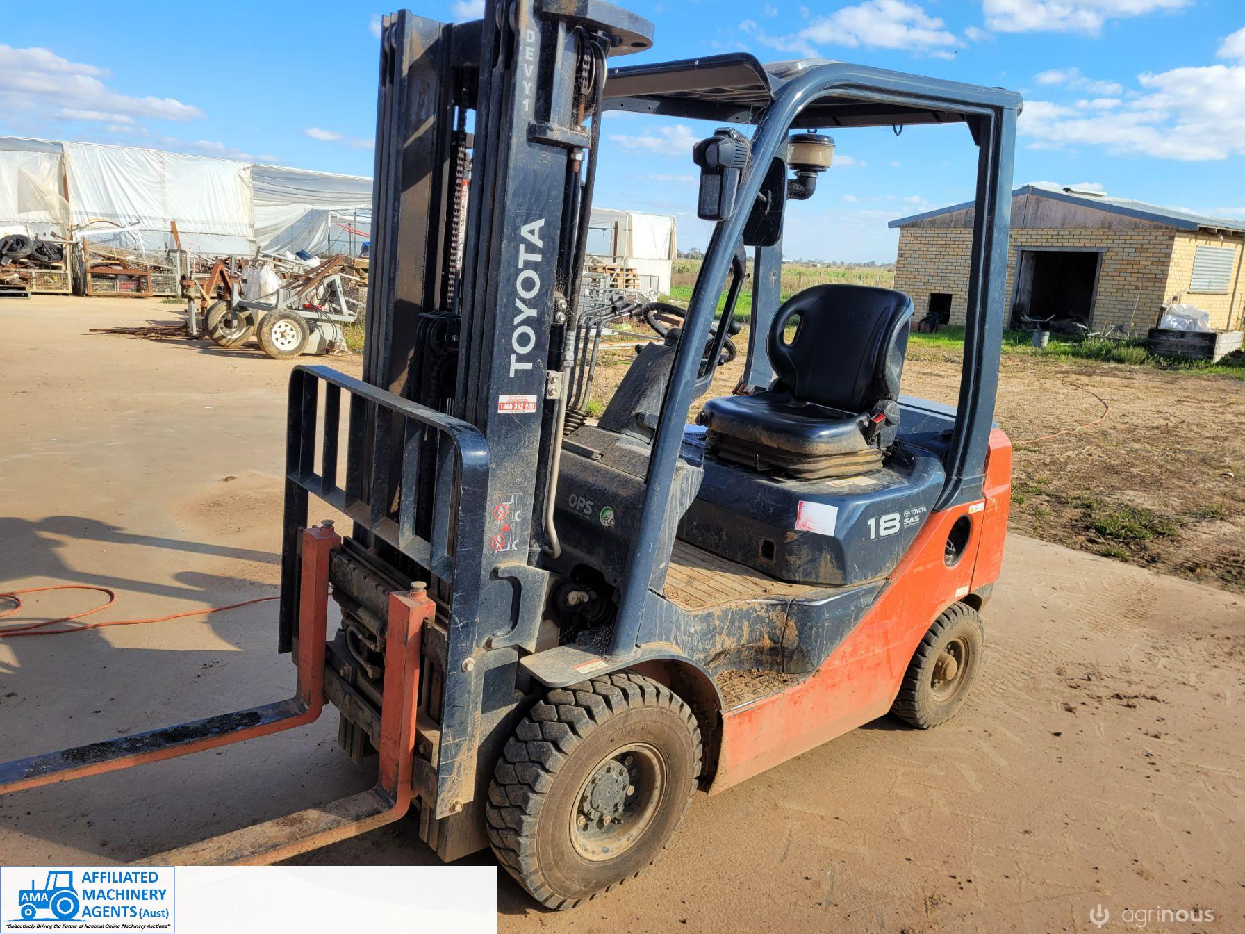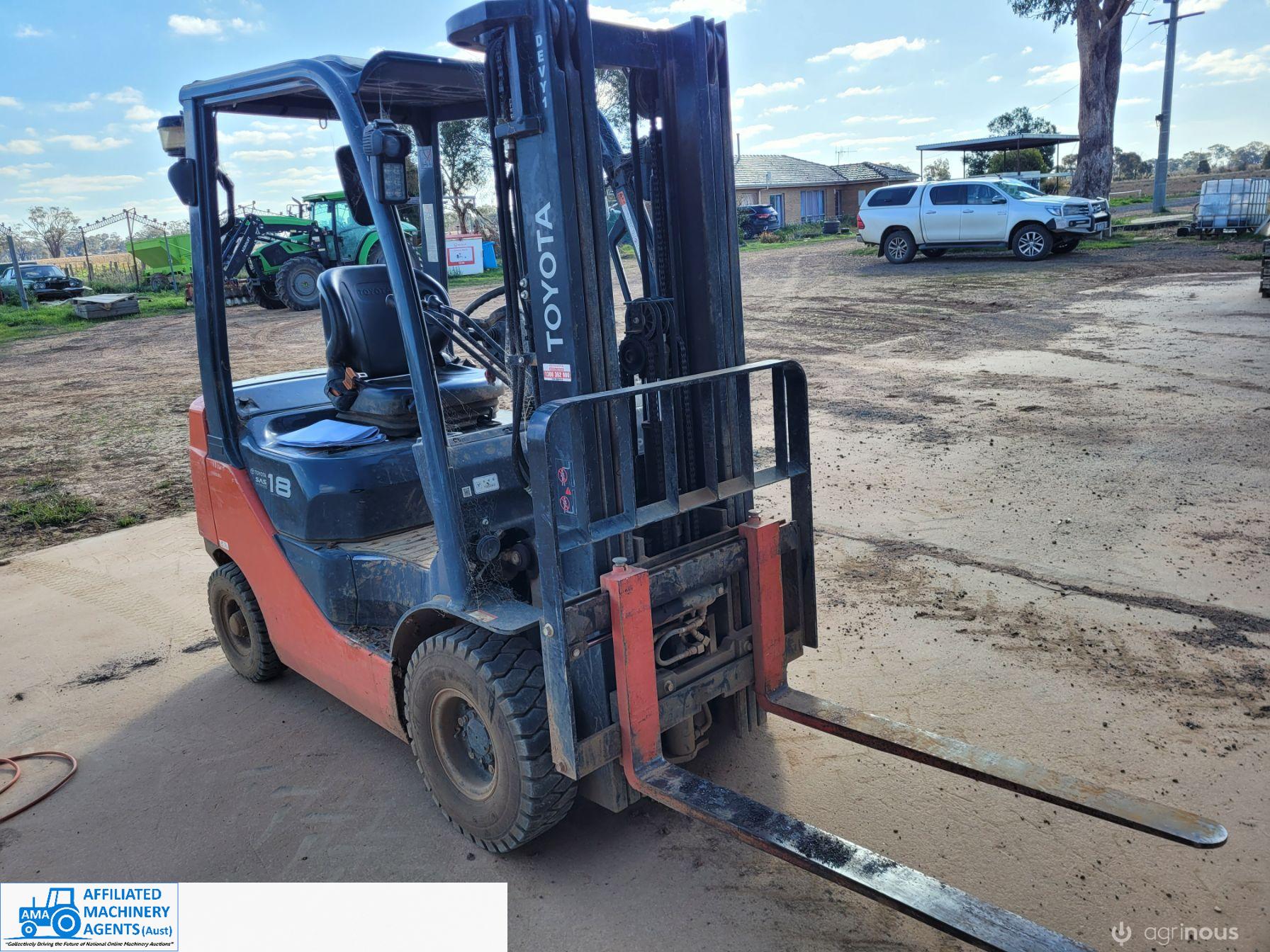 Toyota 1.8 ton Diesel Forklift 62-8FD18 ~ Near new condition ~ Only 327.7 Hrs ~ Always shedded ~ Pneumatic tyres, suit outdoor use ~ Excellent working condition ~ Suit NEW BUYER