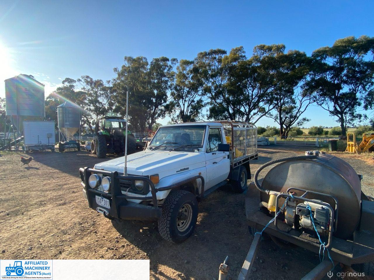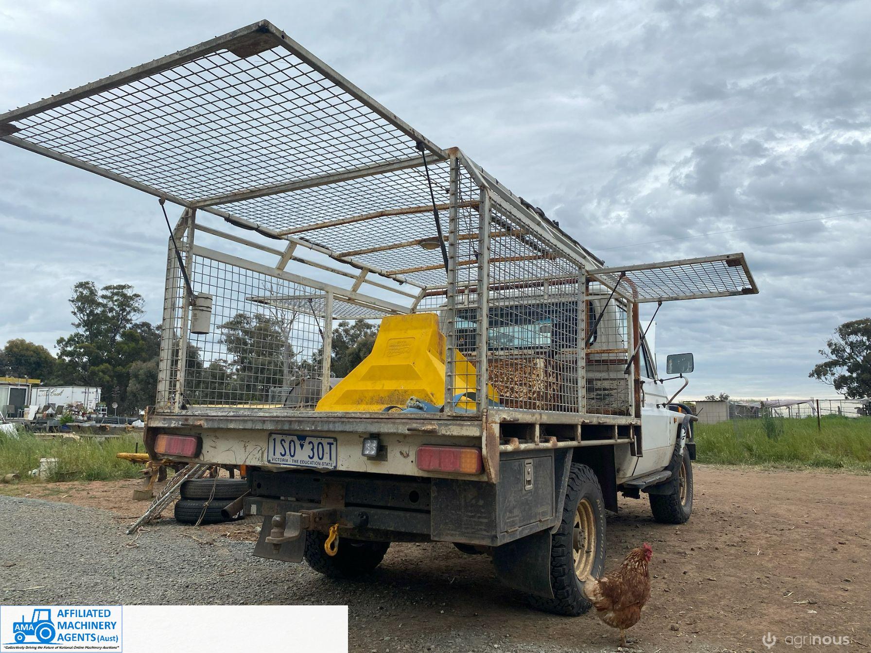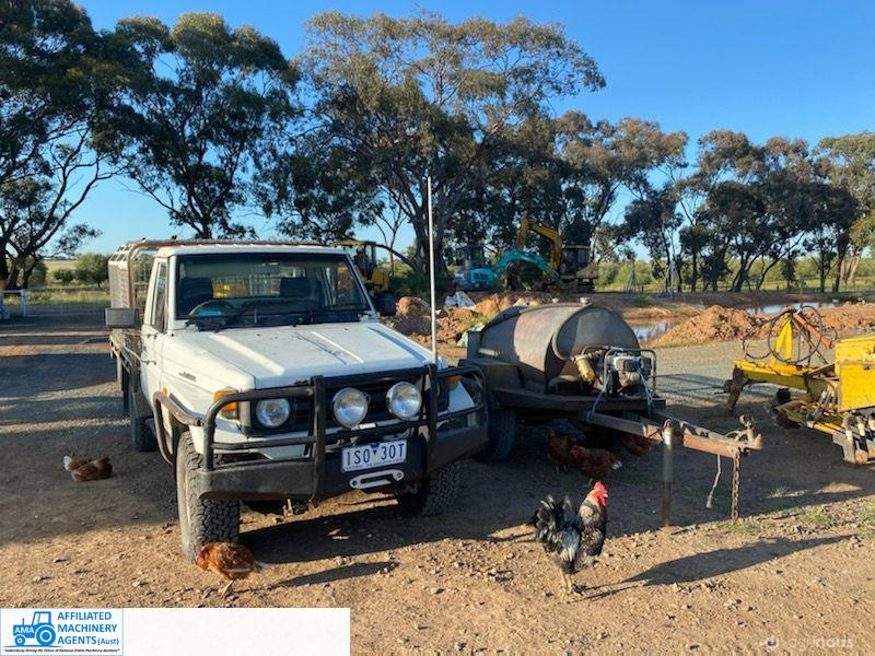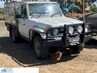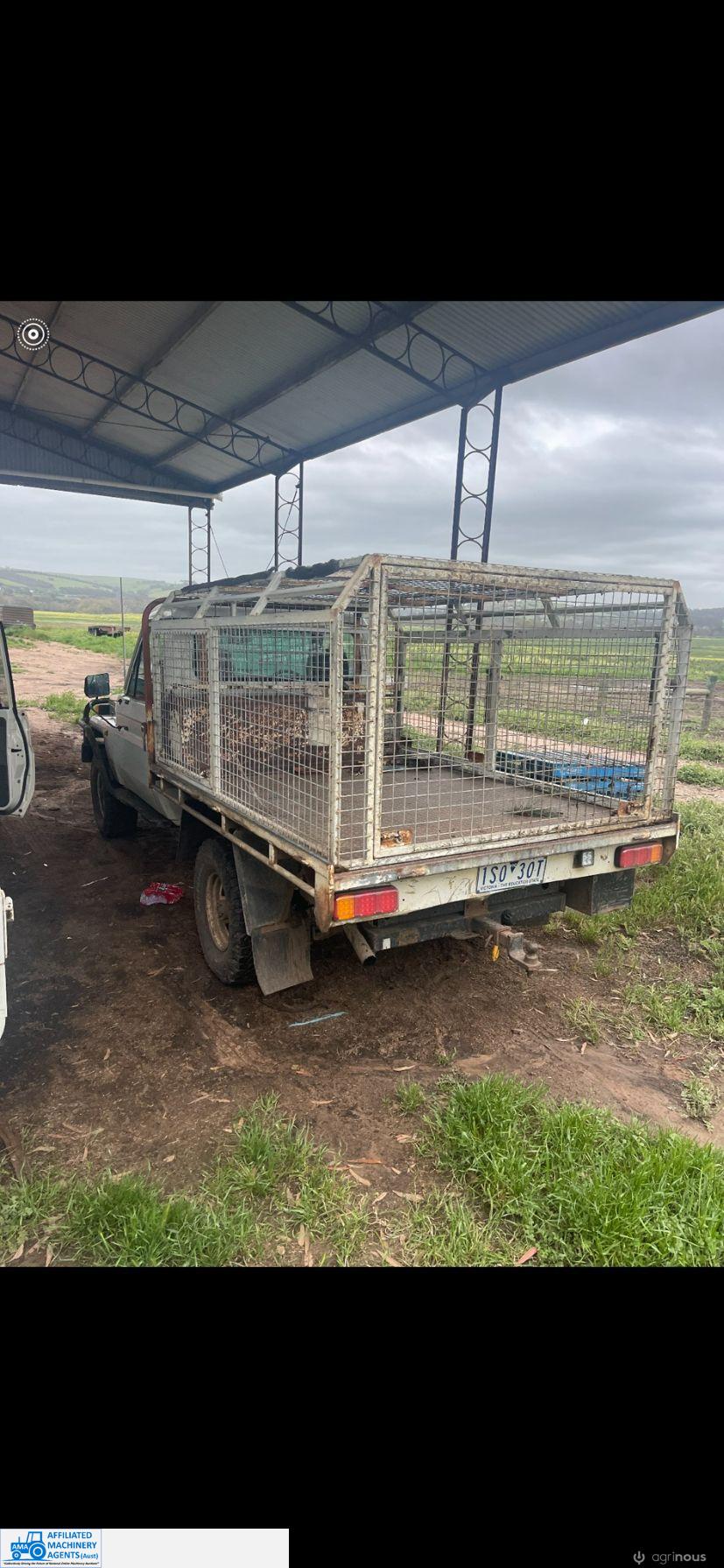 Toyota HZJ75 Landcruiser; 4.2 Ltr 6cyl diesel; 443,691 Kms; Steel bull bar; Steel tray with crate; Near new tyres; Starts, runs & drives well; Currently on Vic Rego (But sold un-reg); Has some rust under windscreen & seats worn/torn; Might pass a roadworthy with some repairs.