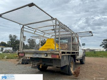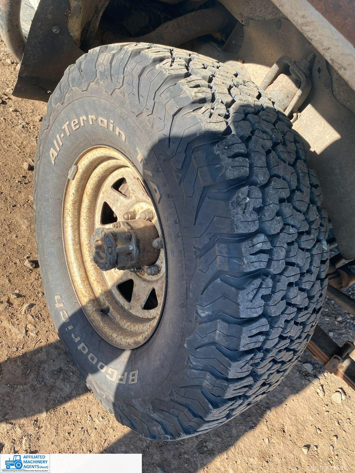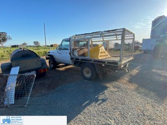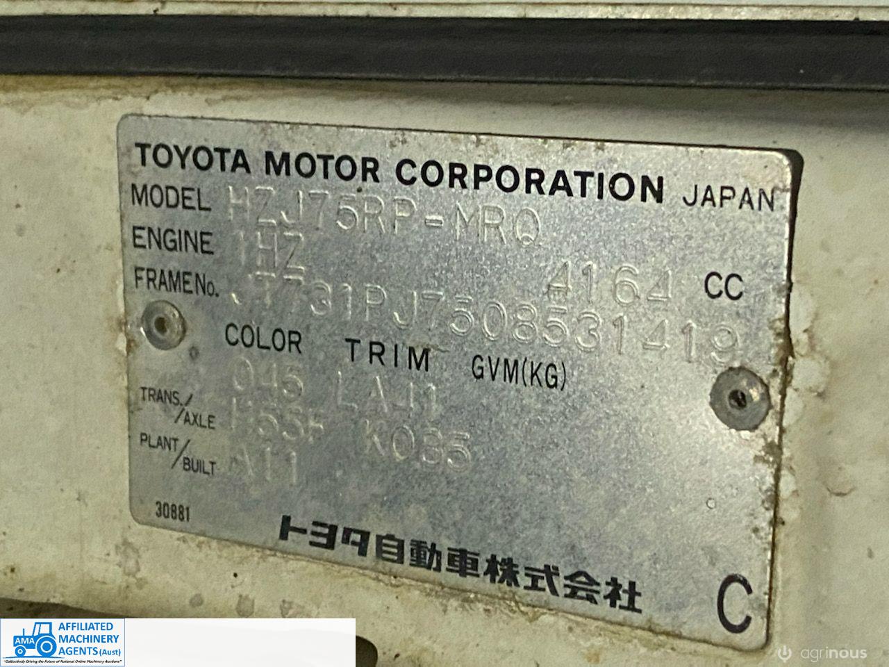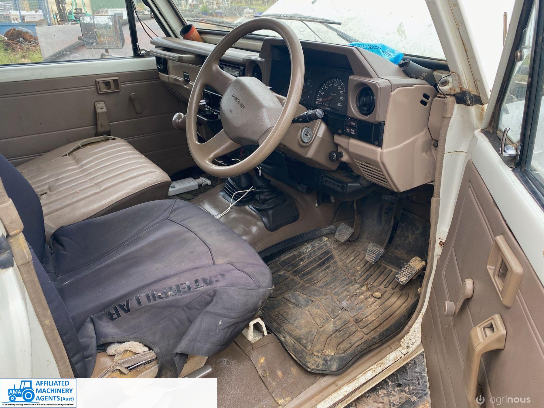 Toyota HZJ75 Landcruiser; 4.2 Ltr 6cyl diesel; 443,691 Kms; Steel bull bar; Steel tray with crate; Near new tyres; Starts, runs & drives well; Currently on Vic Rego (But sold un-reg); Has some rust under windscreen & seats worn/torn; Might pass a roadworthy with some repairs.